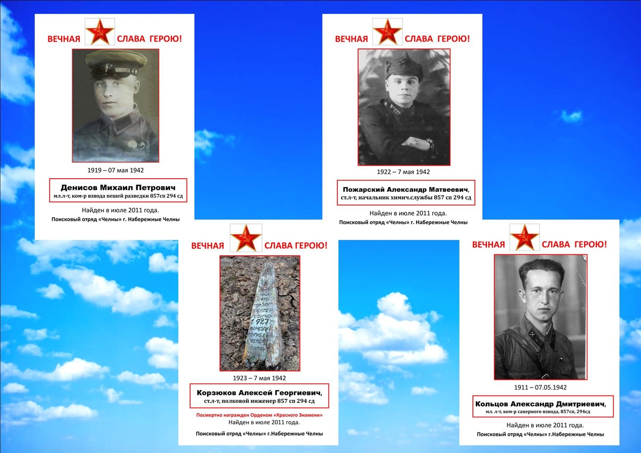 7 мая 1942 года, погибли четыре командира из 294 сд. Погибли молодыми, отражая атаки фашистов. Это были первые именные бойцы в нашем молодом отряде и не последние...
