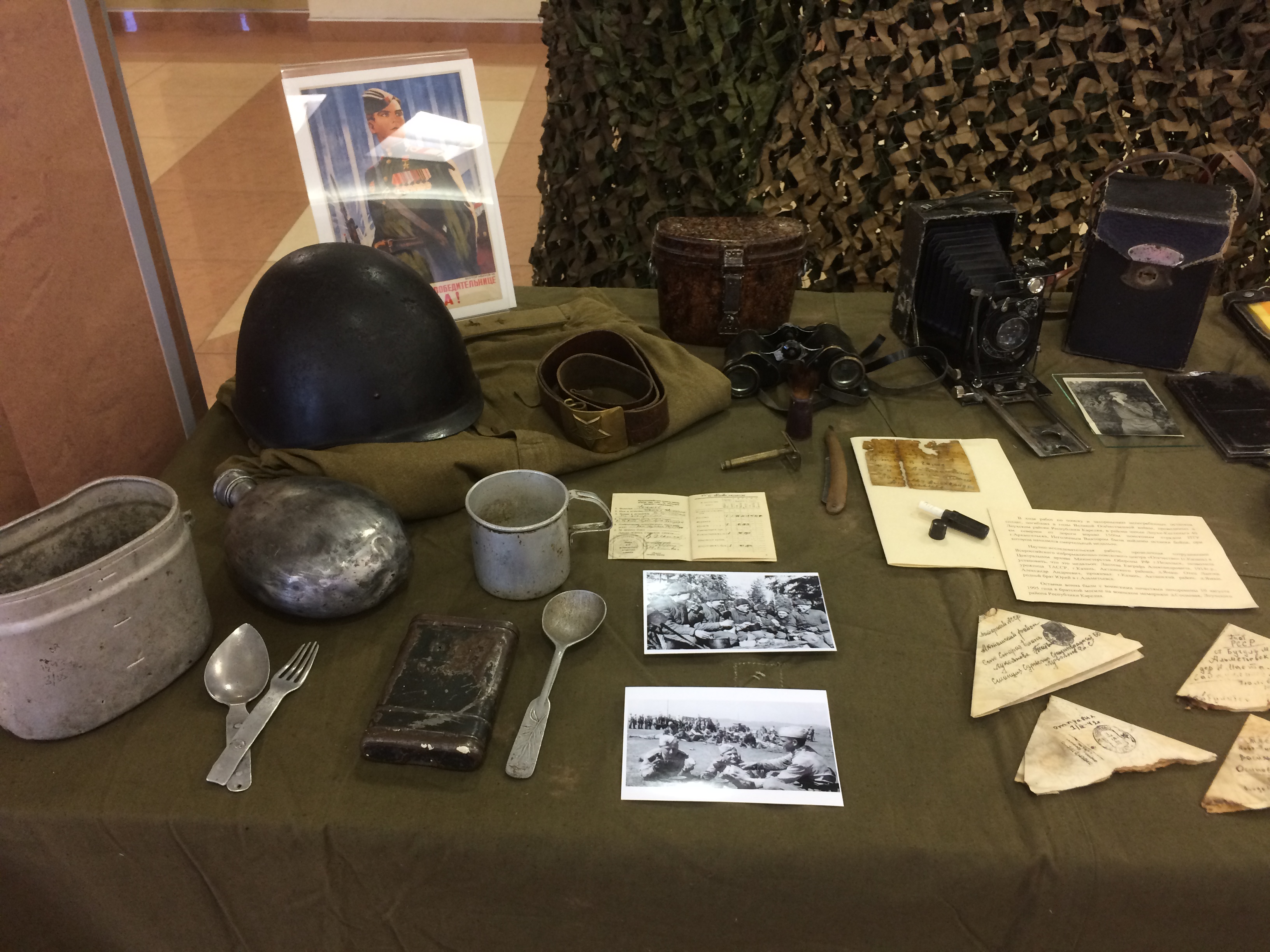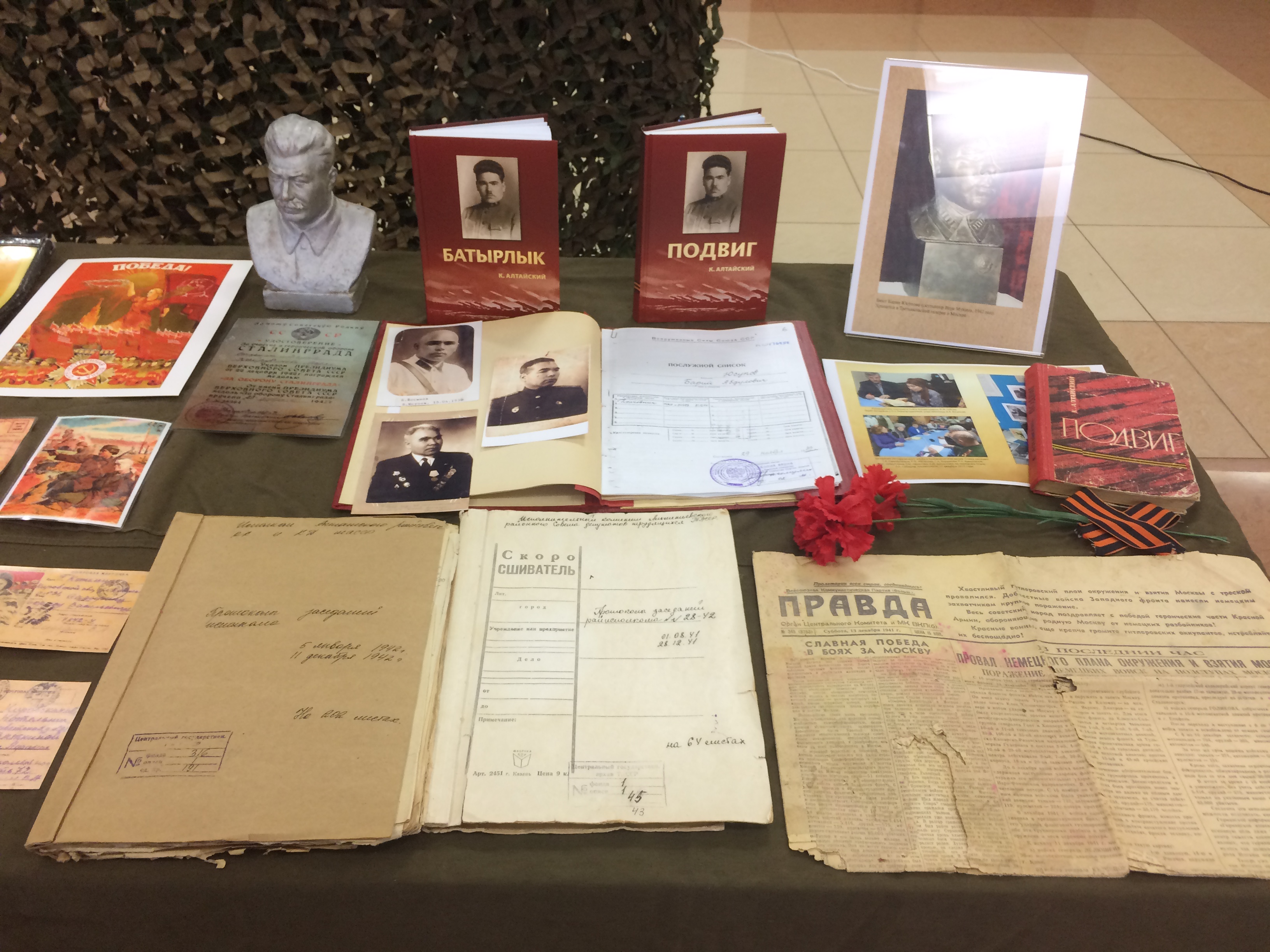 Альметьевский краеведческий музей принял участие в проведении Дня призывника, приуроченного к 100-летию Военных комиссариатов. В части выставки, представленной музеем, был воссоздан интерьер военкомата времён Великой Отечественной войны 1941 – 1945 годов, а так же выставлены экспонаты и материалы, рассказывающие о войне. При осмотре выставки Военный комиссар Республики Татарстан Погодин С.Н. заинтересовано выслушал рассказ о наших героических земляках и отметил, что подвиг советских солдат является примером для нынешнего поколения призывников.