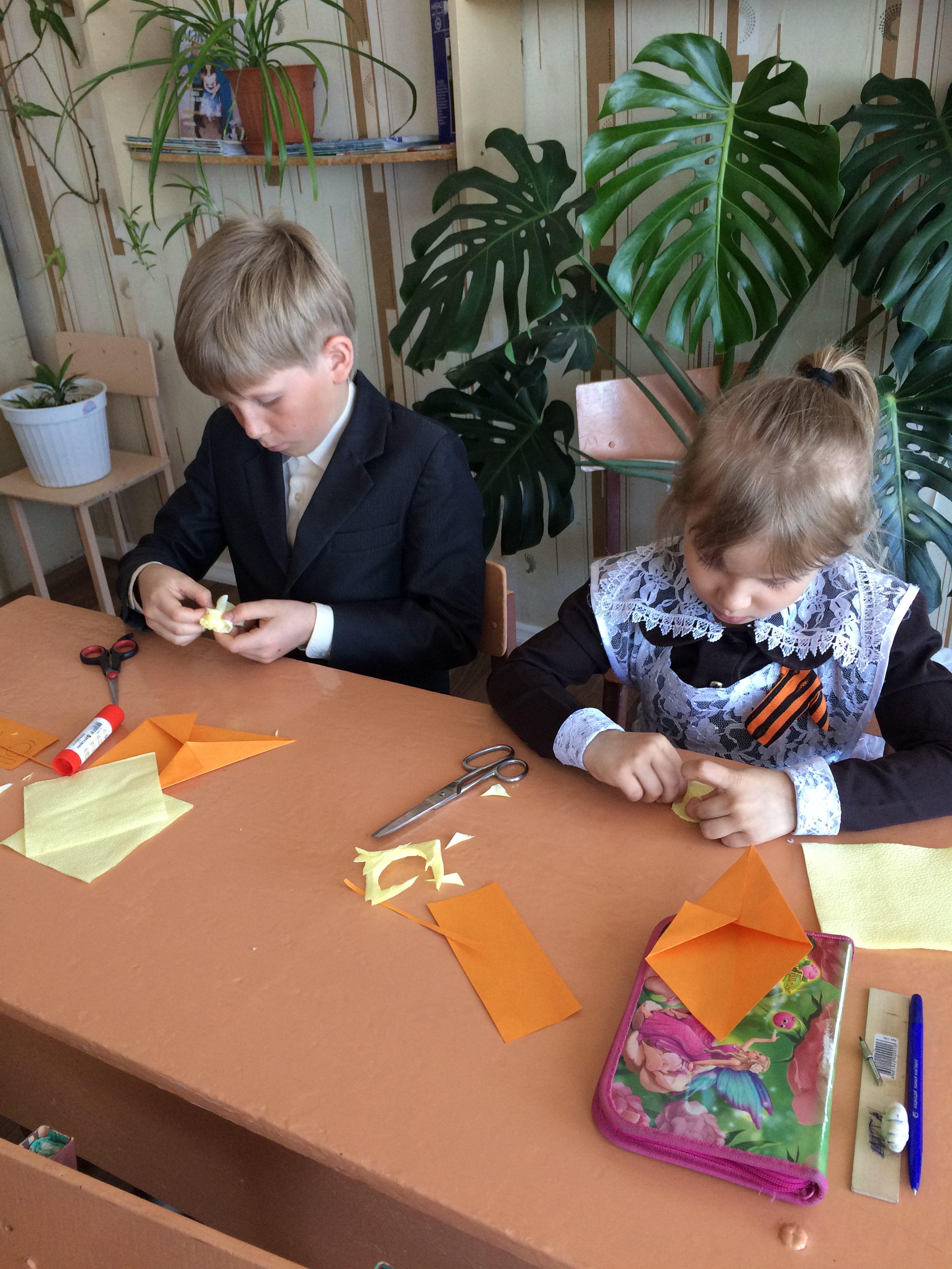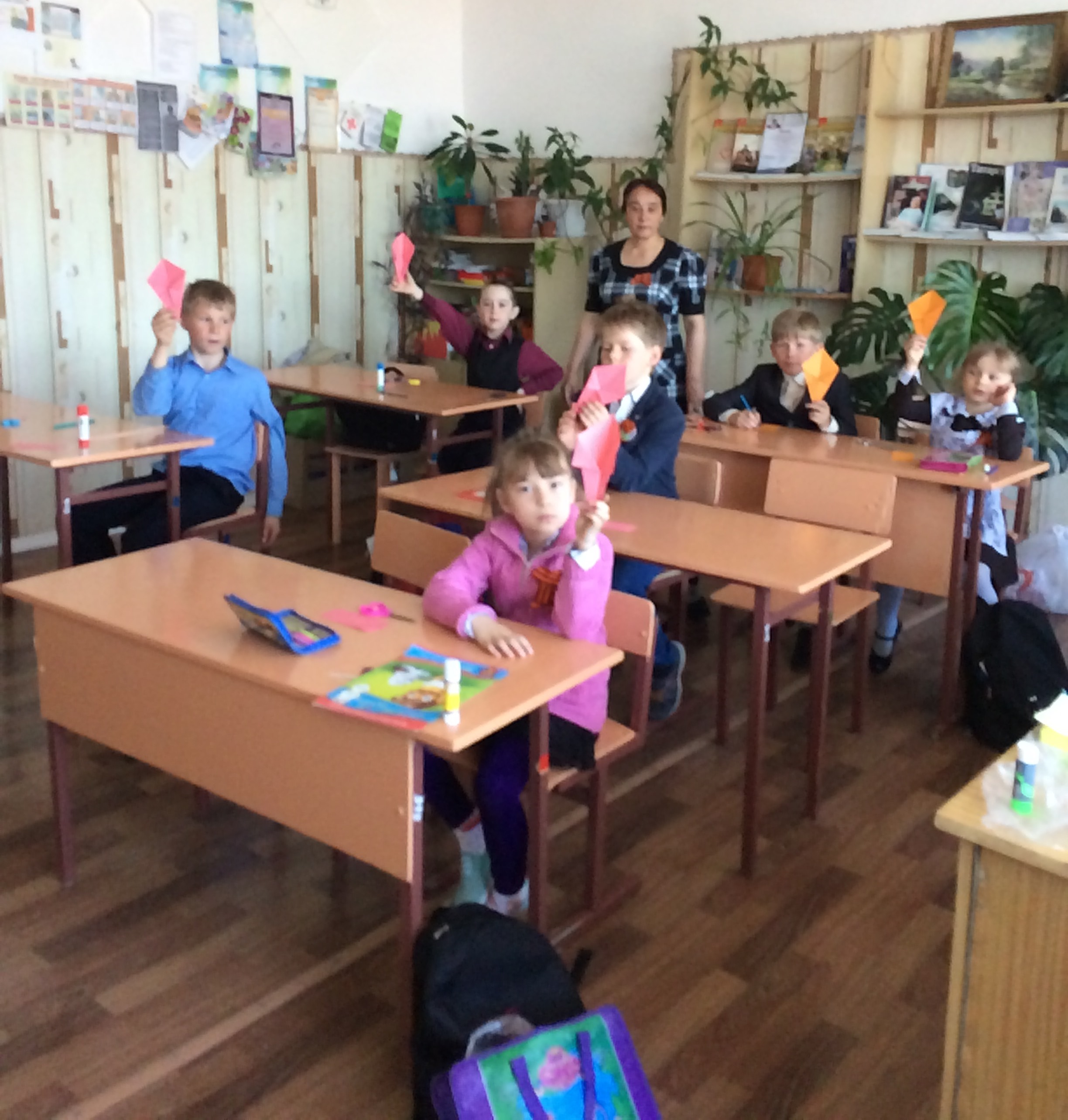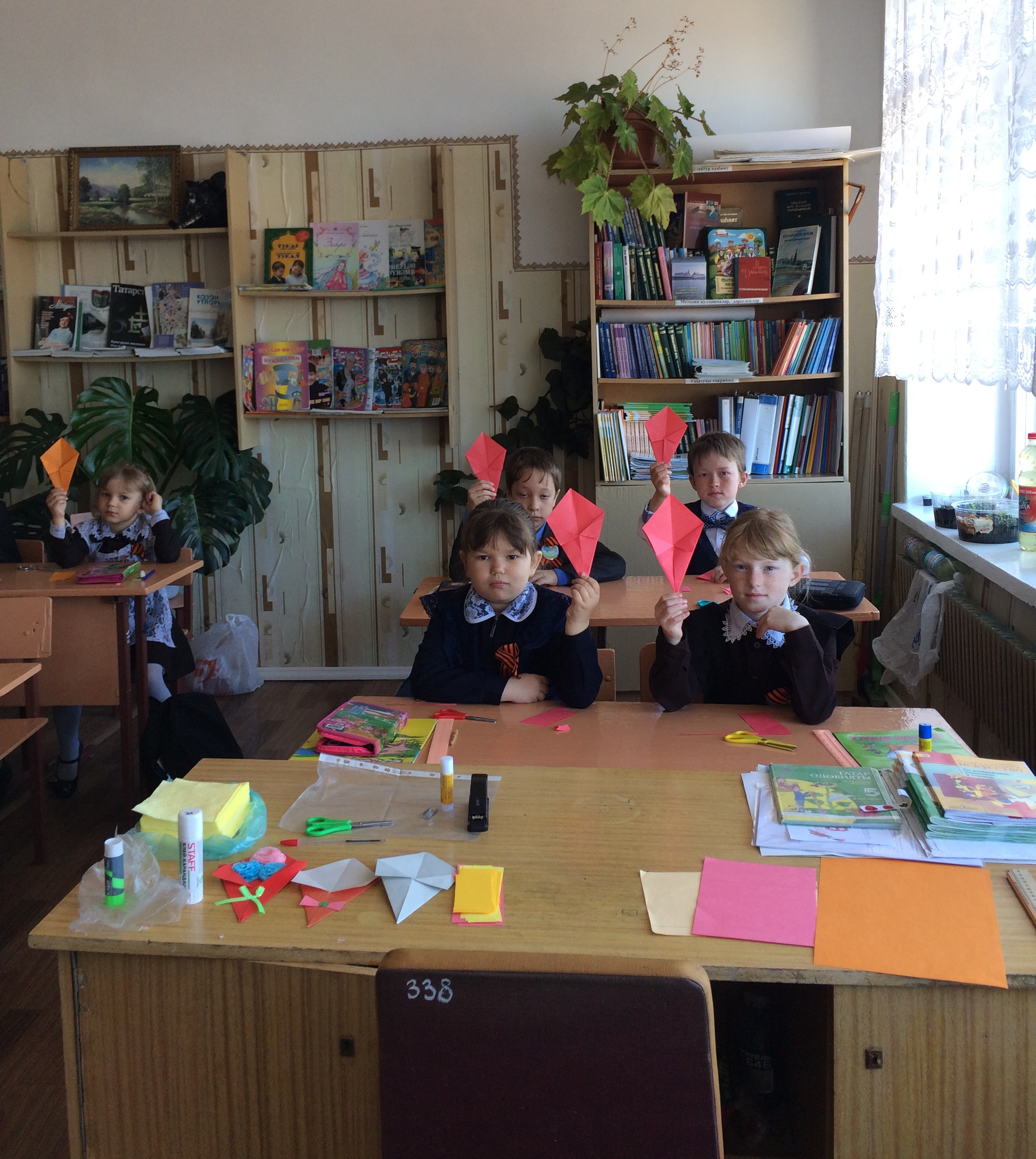 Мастер-класс по изготовлению памятного подарка к празднику Победы для своих дедушек и бабушек для учащихся 1-3 классов Рудницкой средней общеобразовательной школы провела главный хранитель музея Туфана Миннуллина Гульчачак Гимадиева. Дети увлеченно принялись за работу, а результатом их труда стали красочные букеты.