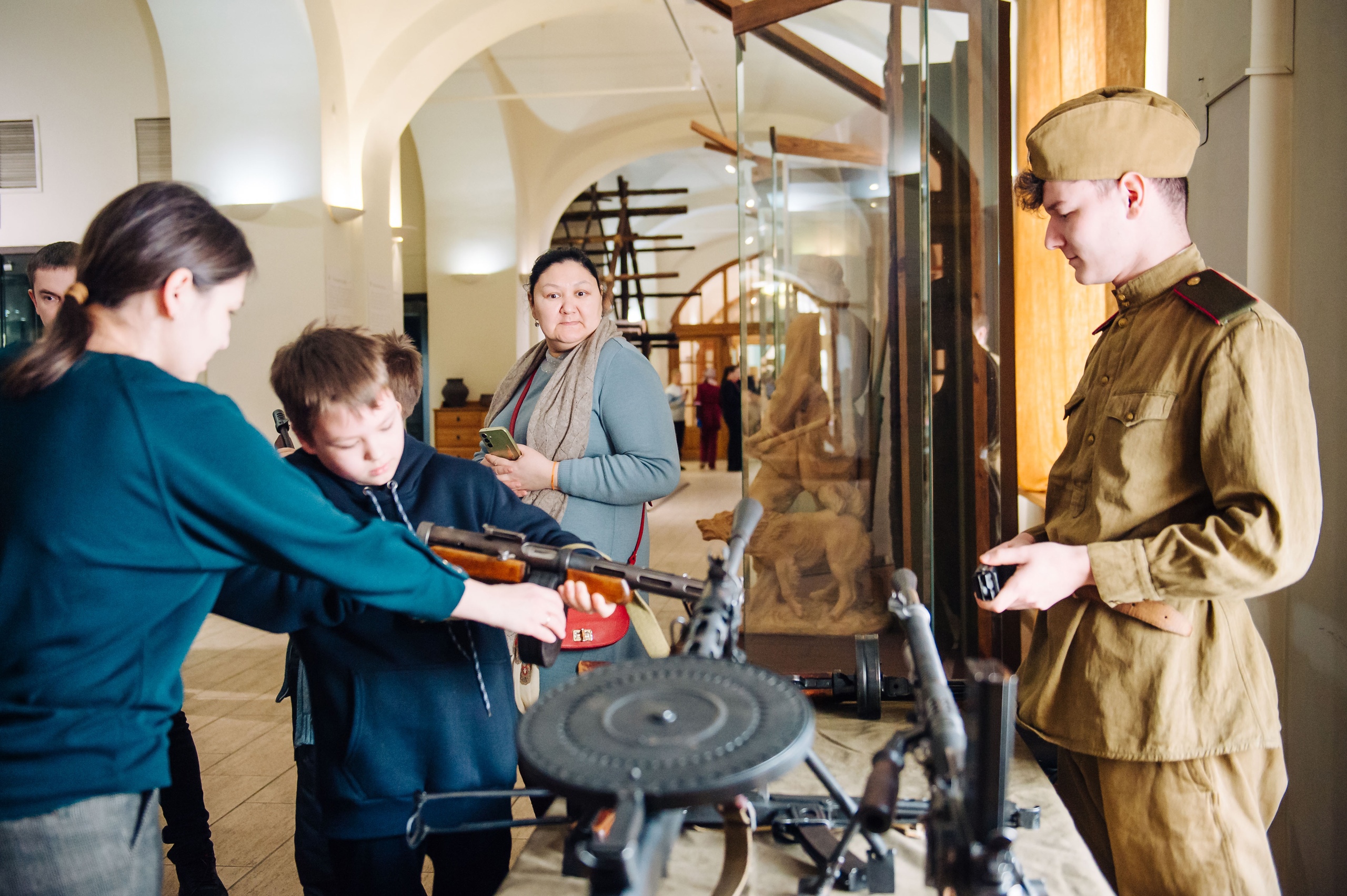 Также в первом зале музея все желающие могли примерить на себя форму и снаряжение солдата Красной Армии.