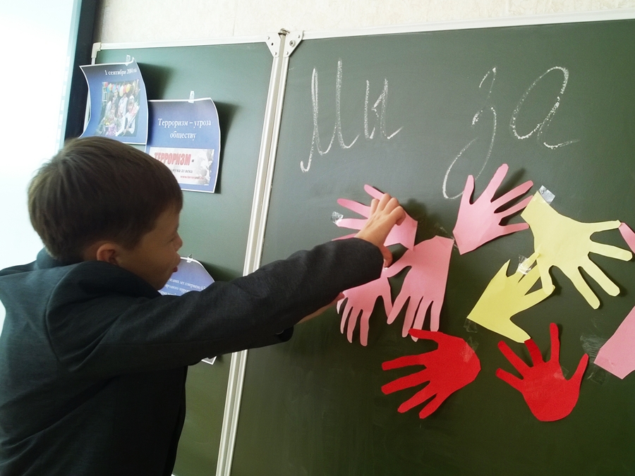 3 сентября в России отмечается День солидарности в борьбе с терроризмом. Эта памятная дата была установлена в 2005 году федеральным законом «О днях воинской славы России» и связана с трагическими событиями в Беслане, когда боевики захватили одну из городских школ. В результате теракта погибли более трехсот человек, среди них более 150 детей. Пострадали самые беззащитные граждане нашей Родины – женщины и дети. В камскополянской школе №1 прошёл урок памяти. Педагог из молодёжного центра «Алан» Ирина Кадцына рассказала о событиях 11-летней давности и об отношении мировой общественности к таким понятиям, как экстремизм и терроризм. Под музыку Моцарта звучали стихи памяти жертвам террористических актов. Минутой молчания пяти- и шестиклассники почтили память погибших. Разговор продолжился беседой о человеческих ценностях: милосердие, доброта, толерантность, сострадание, гуманизм, уважение, мир и дружба всех народов земли. С большим воодушевлением дети спели песню «Солнечный круг». Завершился урок памяти созданием аппликаций из детских ладошек - символа дружбы всех детей мира. «Мы за мир во всем мире», «Пусть не будет террора» – с такими мыслями ребята уходили с урока.