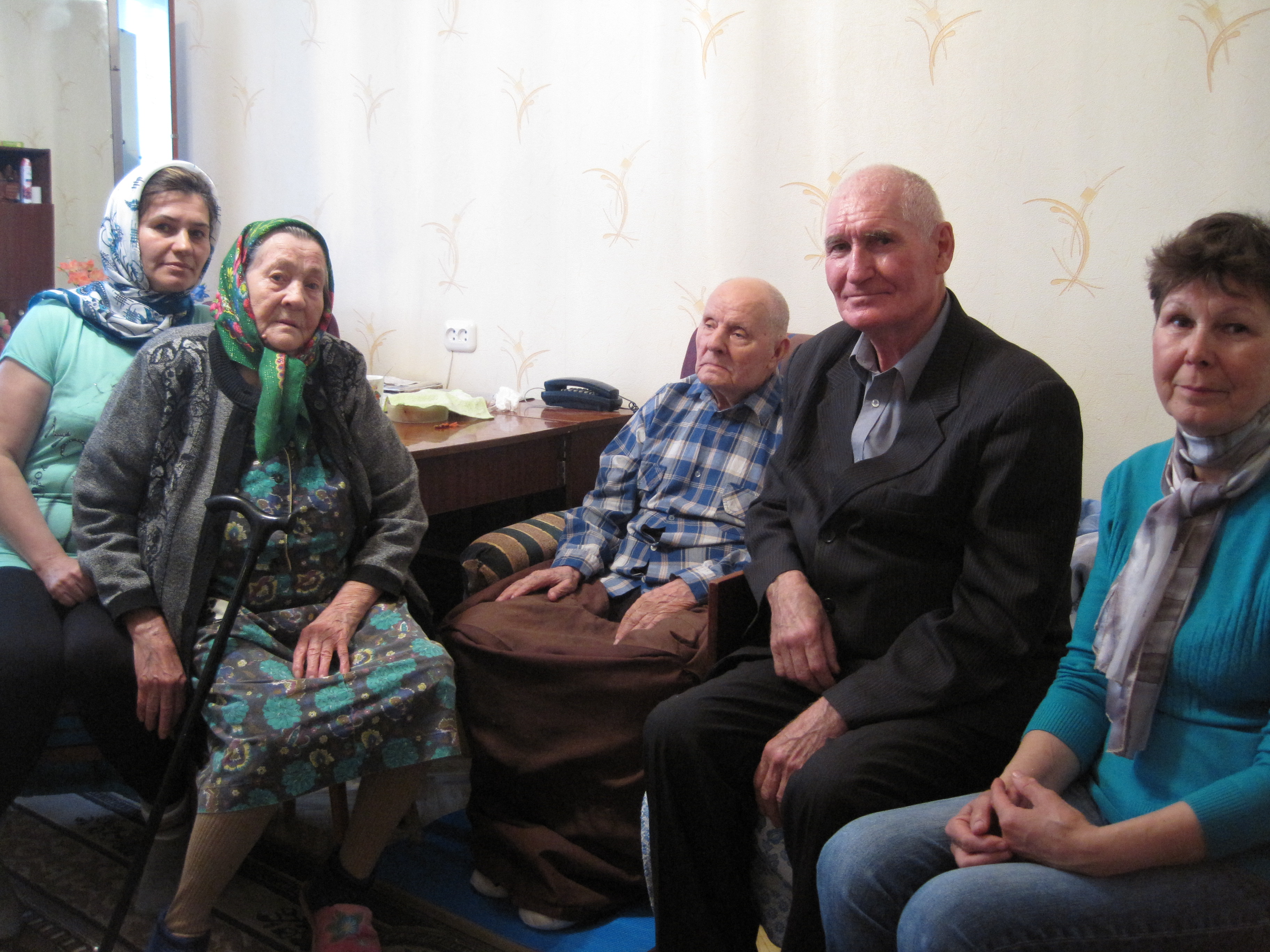 Совместное посещение на дому с представителями общественной организации совета ветеранов, 21 апреля 2016 года в рамках добровольческой акции «Весенняя неделя добра – эстафета добрых дел» социальный работник КЦСОН «Шафкатъ» Закирова Кадрия Фаисовна организовала совместное посещение с представителями общественной организации совета ветеранов, общества инвалидов супружескую пару - участника Великой Отечественной войны Главнова Петра Ивановича, труженика тыла Главнову Екатерину Федоровну на дому.