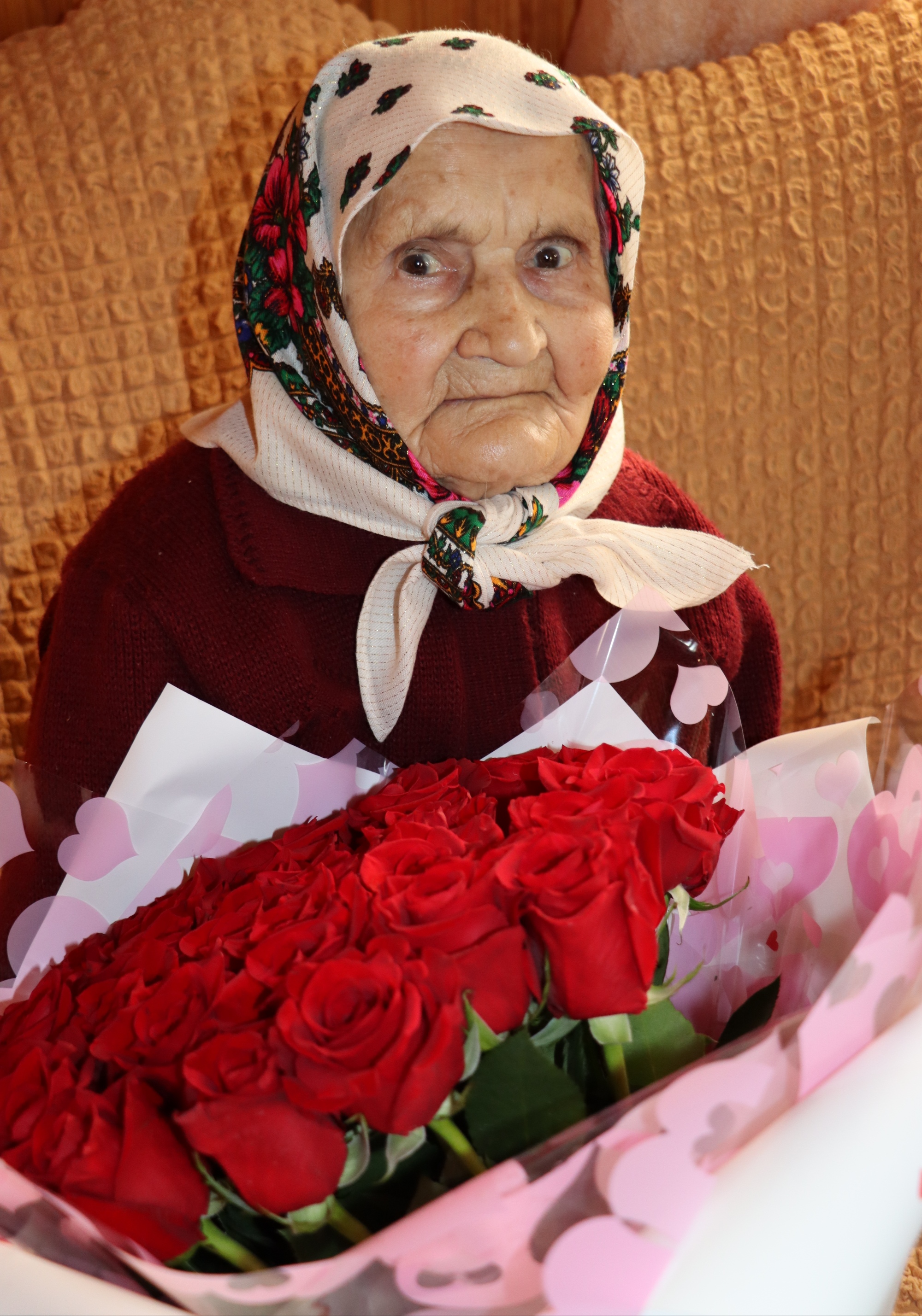 Ольга Максимовна с радостью принимала подарки и пожелания, попутно отвечая на вопросы о том, где работала и как прошла непростую жизнь.