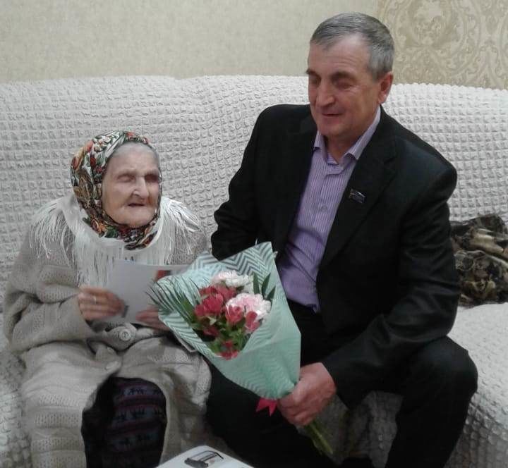 Со столь знаменательной датой юбиляршу поехал поздравлять глава поселения Александр Ярухин. Он вручил Поздравление от имени Президента РФ и подарок от имени Главы района. Выразил слова благодарности за труд, пожелал здоровья и внимания родных и близких.