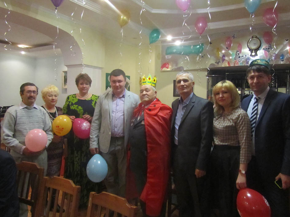Поздравить уважаемого юбиляра пришли соратники по работе , бывшие коллеги, родственники, друзья и соседи. Поздравительный адрес от Президента России Владимира Путина зачитал заместитель главы муниципального района Газинур Габидуллин, он же поздравил именинника и от имени руководства района и преподнес ему подарок.