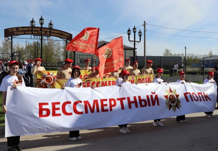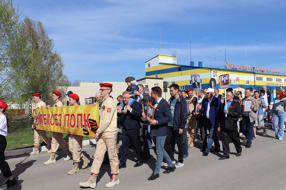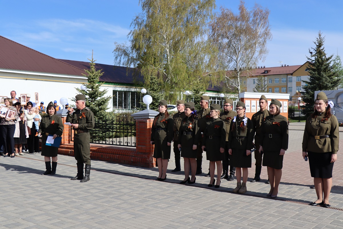 Формирование колонны шествия «Бессмертного полка» было организовано в 15.00 часов у парка Дважды Героя Советского Союза Петра Дементьева и прошлась по улицам центрального района Сайфихана Нафиева и Центральная. «Бессмертный полк» прибыл к монументу Боевой и Трудовой Славы к Вечному огню в районном центре.