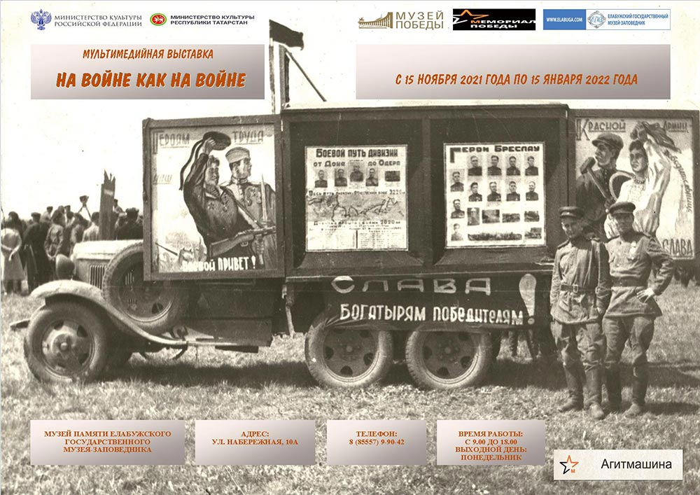 В Музее Памяти Елабужского государственного музея-заповедника в рамках Международного проекта «Территория Победы» экспонируются сразу две мультимедийные выставки: «Герои Отечества — Герои малой родины» и «На войне как на войне».