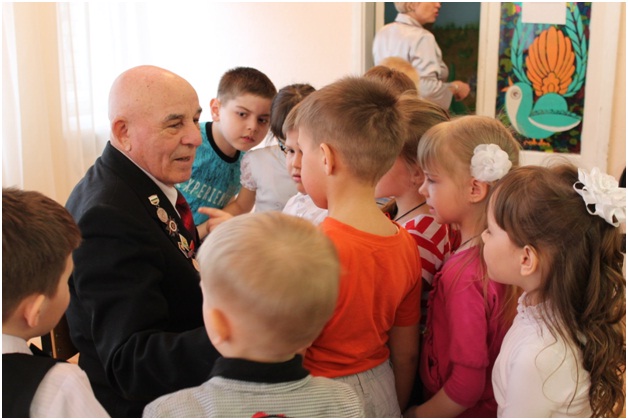 Елабужские дошкольники встретились с ветераном Великой Отечественной войны Мубаракшиным Ракипом Мубараковичем. Ветеран рассказал детям о тяжелых годах войны, за что получил награды. Дети с интересом рассматривали ордена и медали на кителе ветерана. Ребята старших и подготовительных групп исполнили ветерану песню и рассказали стихи о войне.