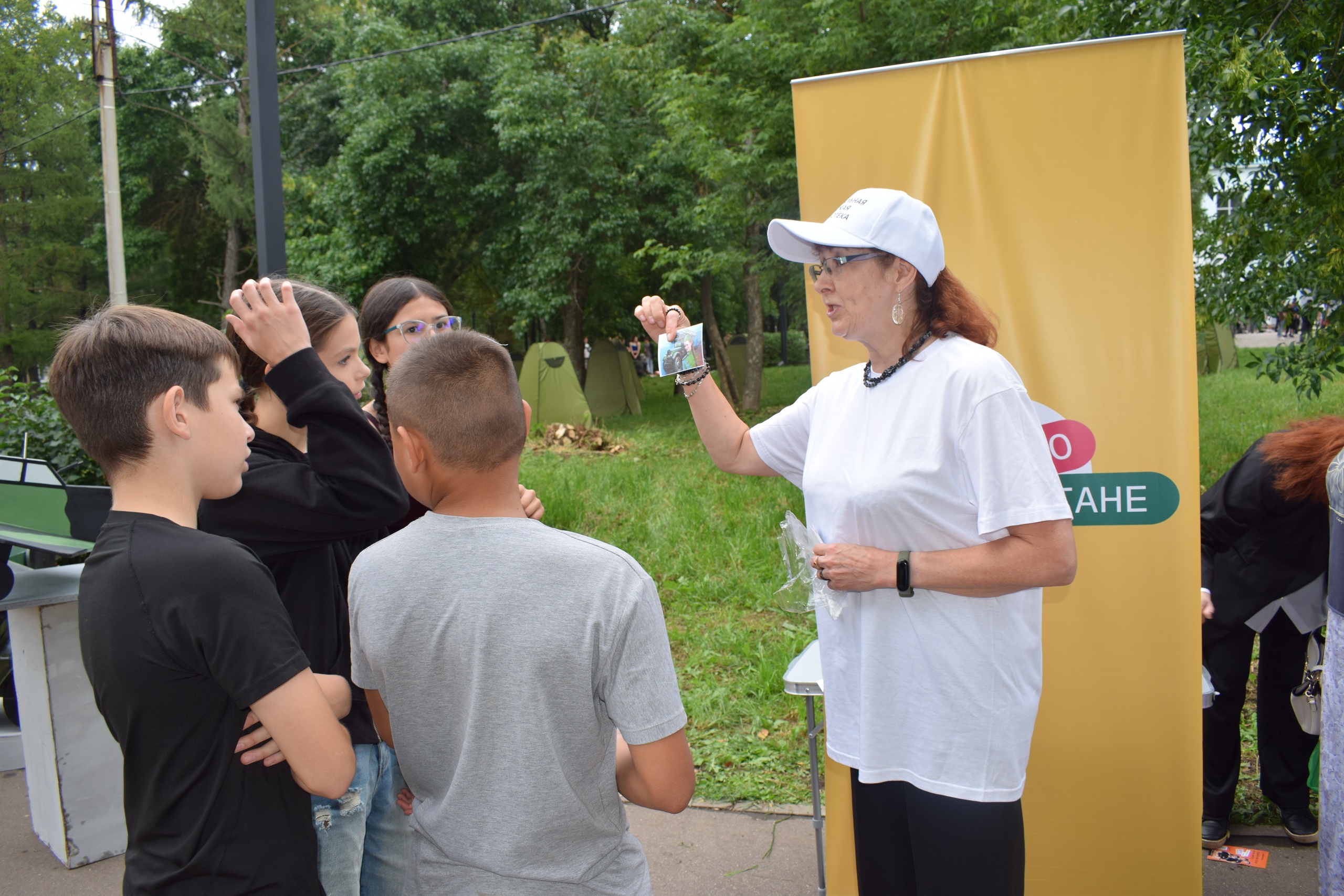 Библиотекари предложили отдыхающим бугульминцам поучаствовать в спортивных играх, таких как метание диска, переход по кочкам, хождение на скорость в «эспадрильях». Желающие с удовольствием прыгали через скакалку и проходили сквозь «паутину».