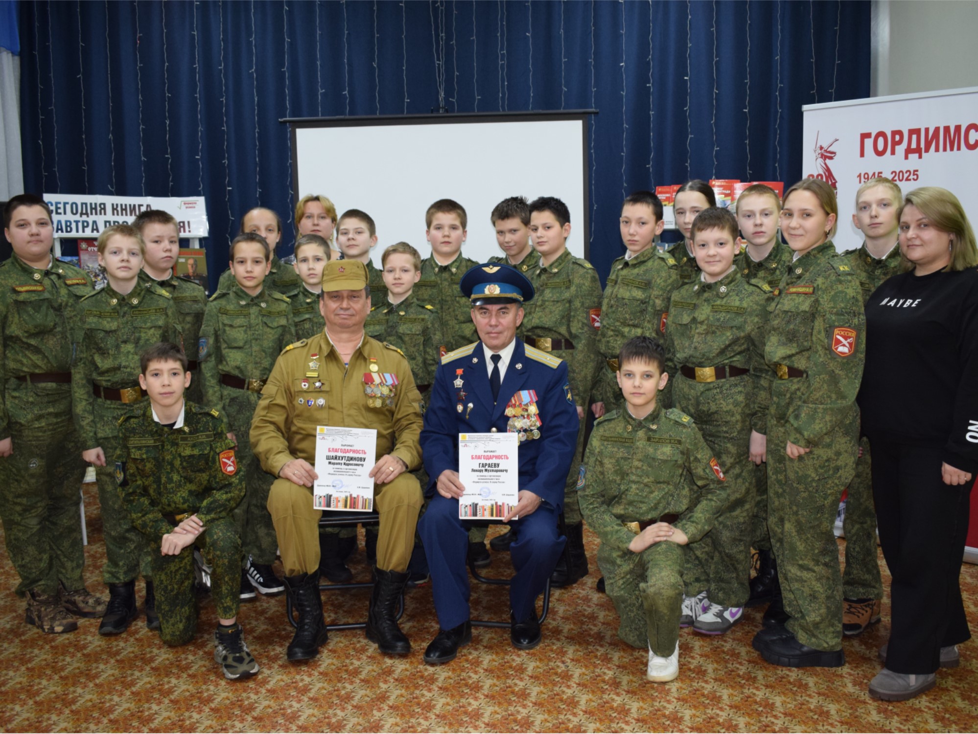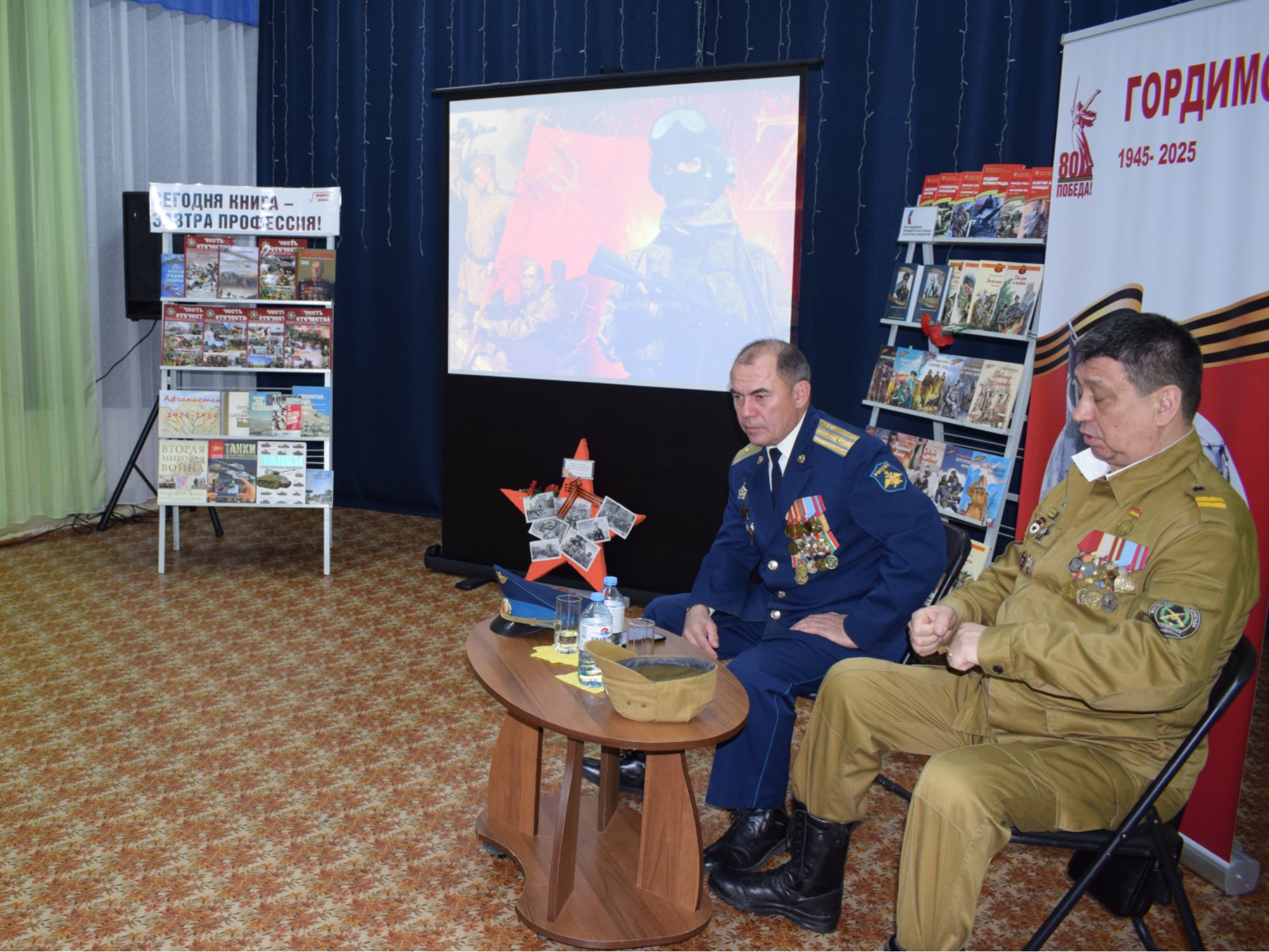 В центральной детской библиотеке г. Бугульма на формулу успеха «Я служу России» были приглашены учащиеся ГБОУ «Бугульминская кадетская школа-интернат им. Героя Советского Союза Г.Гафиатуллина». В ходе увлекательной беседы дети получили жизненные советы от майора запаса, кавалера «Ордена Красной звезды» Ленара Гараева и председатель Бугульминского районного отделения «Российский союз ветеранов в Афганистане», гвардии младшего сержанта запаса Марат Шайхутдинов, чья воинская доблесть и отвага отмечены орденом «Красной Звезды», медалью «За боевые заслуги», медалью «За заслуги перед Отечеством» II степени. Гости мероприятия рассказали о военной технике, об участии в первом бою, о личном оружии, о том, как мирные афганцы относились к советским солдатам, была ли вера в победу и о то, как они относятся к современным событиям. В заключение присутствующие почтили память всех погибших солдат минутой молчания.