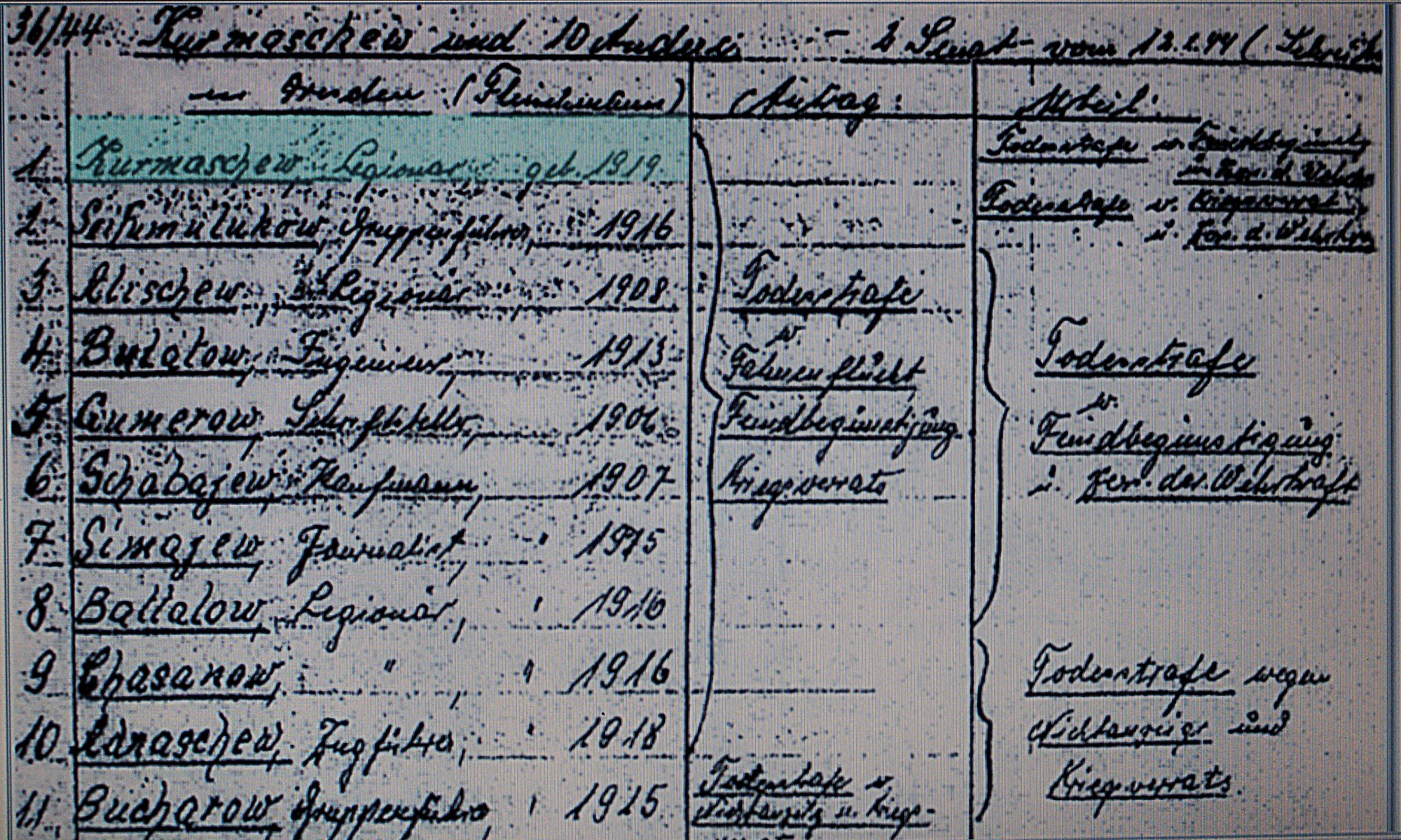 После безрезультатных допросов Курмаша отдали на растерзание гестапо в следственную тюрьму Тегель. Допросы продолжались по несколько часов. Надеясь на то, что кто-нибудь из них проговорится, следователь организовывал очную ставку с Курмашевым.