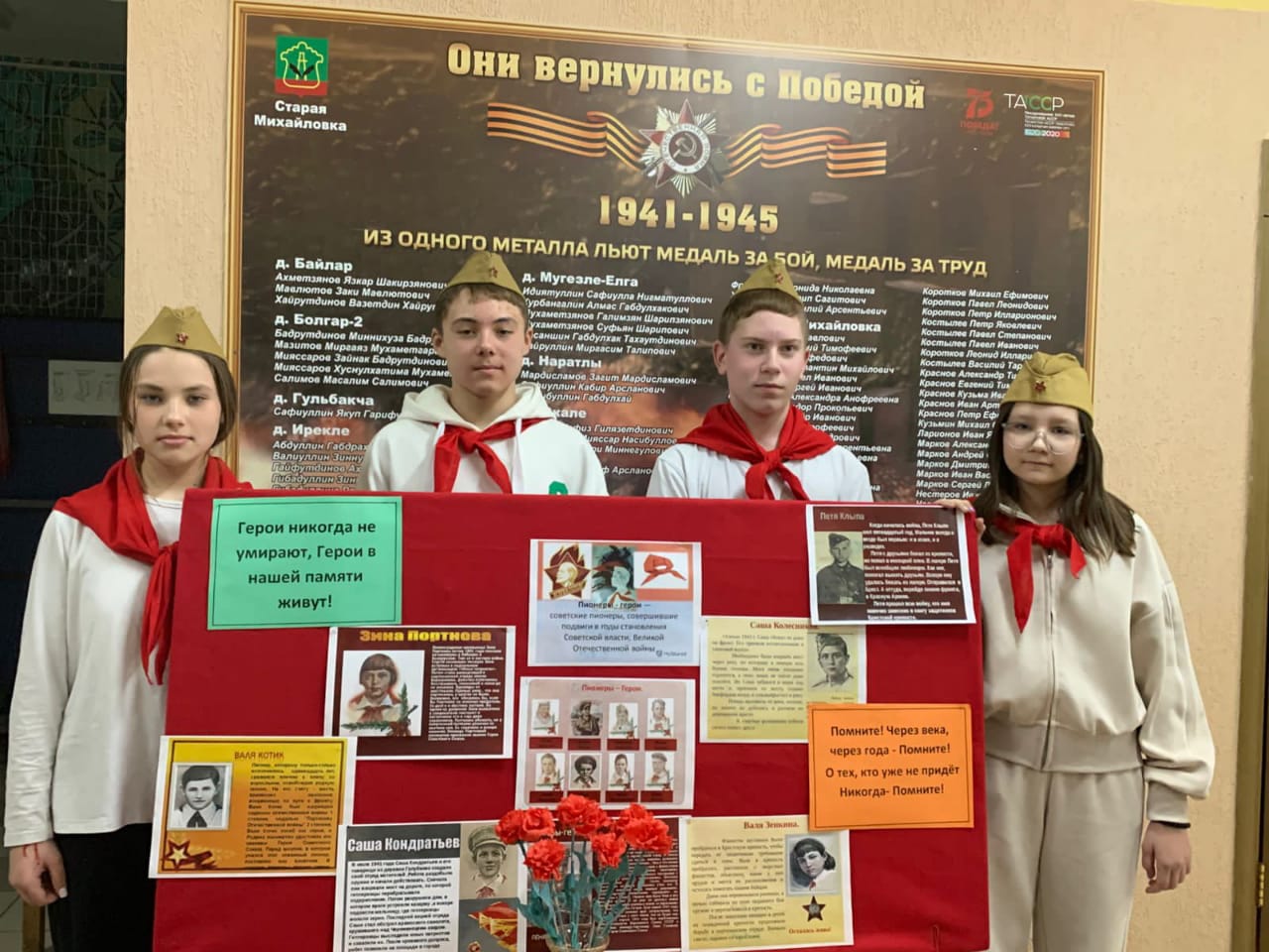 В рамках Года Защитника Отечества и 80-летия Великой Победы, в преддверии Дня юного героя - антифашиста в Старомихайловском сельском доме культуры прошел час истории на тему "Герои - пионеры Великой Отечественной войны". Ребятам было рассказано о пионерах - героях, о подвигах мальчишек и девчонок, бесстрашно и гордо шагнувших в зарево войны, о борьбе юных антифашистов против захватчиков в годы Великой Отечественной войны. Дети узнали имена, чей подвиг навеки останется в памяти поколений. Рассказали детям о подвигах Лени Голикова, Зины Портновой, Марата Казея, молодогвардейцах Краснодона и многих других.