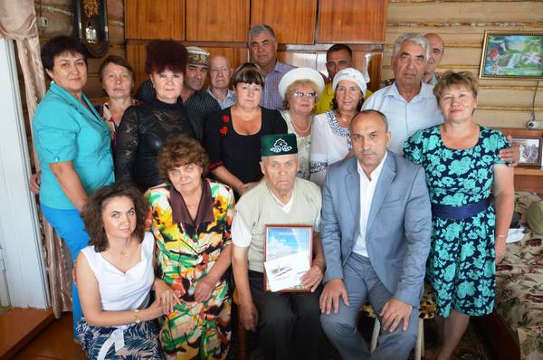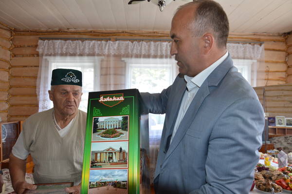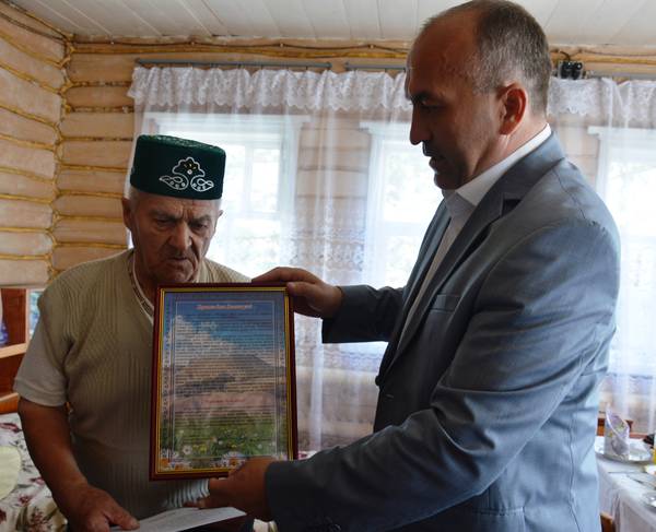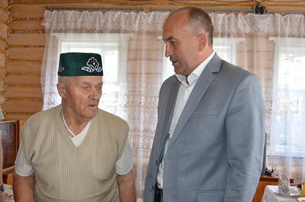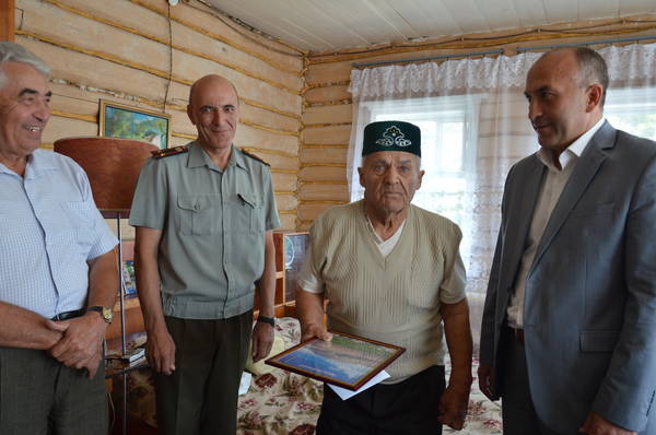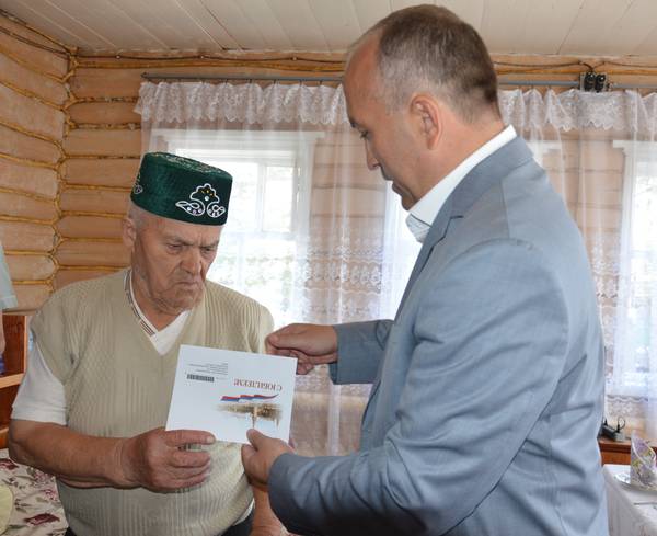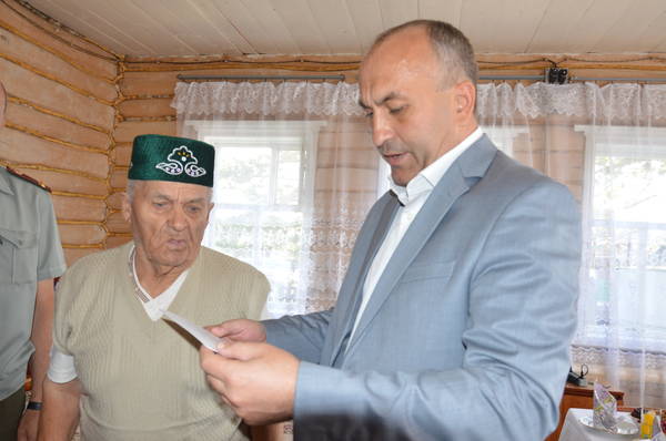 Глава Азнакаевского МР М.З.Шайдуллин поздравил жителя д.Нижнее Сухояш Хасаншина Ахата Хасаншиновича с 90-летним юбилеем от 03.08.2015 12:00