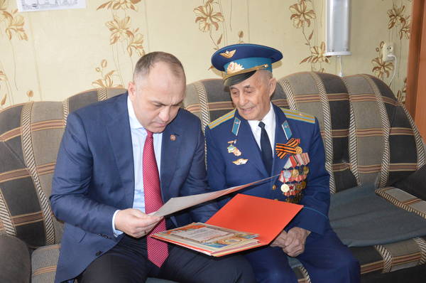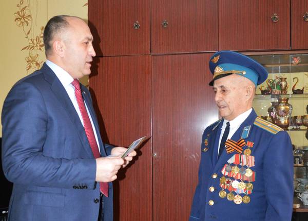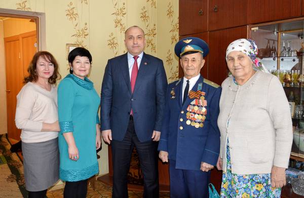 Глава Азнакаевского муниципального района Марсель Шайдуллин поздравил с 82-летием Гаптелхакова Миннехуза Гаптелхаковича