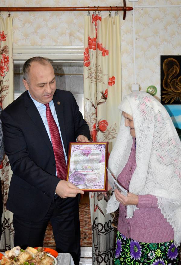 Глава Азнакаевского муниципального района Марсель Шайдуллин поздравил с 90-летним юбилеем Сагидуллину Оркию Сагидулловну