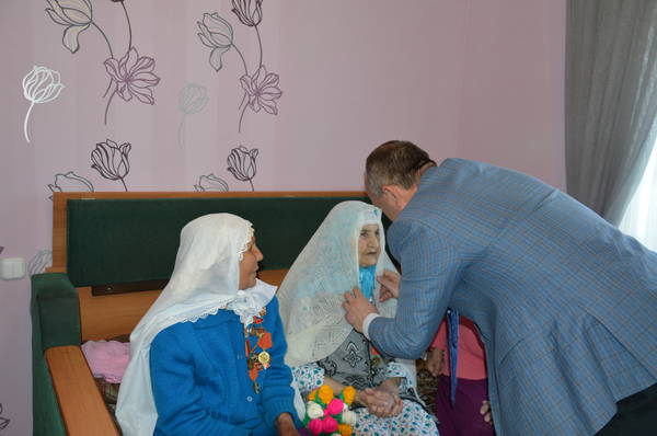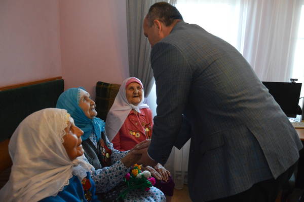 22.05.2015 14:30 Глава Азнакаевского муниципального района М.З.Шайдуллин поздравил Хайдарову Муназдагу Бадриахметовну с 90-летним юбилеем