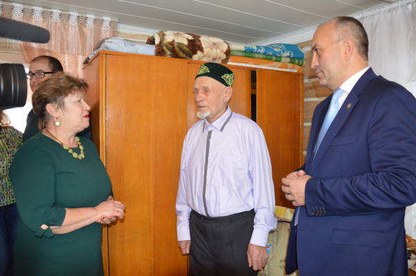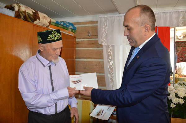 Глава Азнакаевского района М.З.Шайдуллин поздравил участника ВОВ Маликова Мирхата Маликовича с 90-летним юбилеем