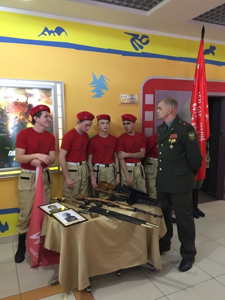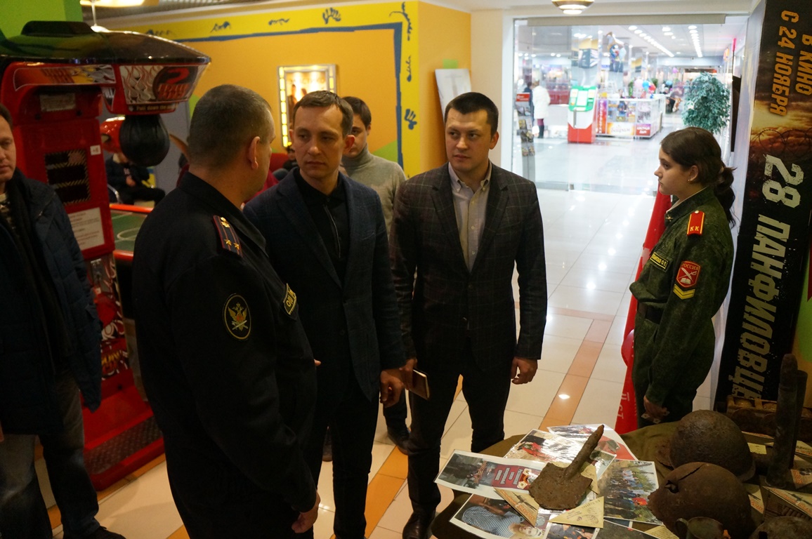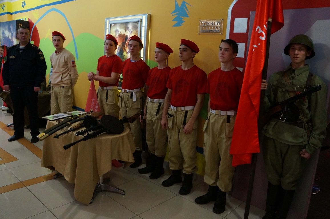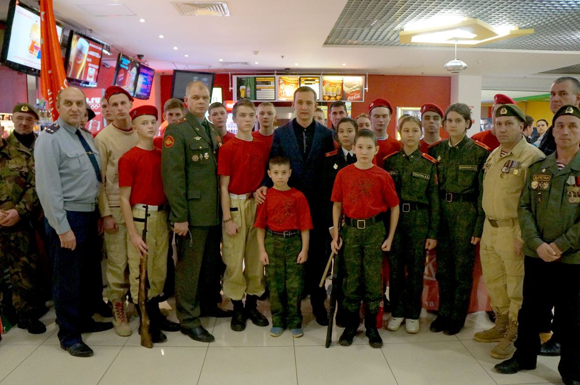 До начала фильма глава района встретился с предпринимателями и учащимися образовательных учреждений. В фойе третьего этажа участники поискового отряда «Кадет» представили экспозицию своих трофеев. По словам старшего офицера –воспитателя кадетской школы №18, в августе этого года поисковый отряд в течение 10 дней вел работу под Волгоградом. Во время раскопок были обнаружены останки двух павших воинов времен Великой Отечественной войны. Члены экспедиции также приняли участие в захоронении останков в Мемориальном комплексе «Россошь» Волгоградской области.