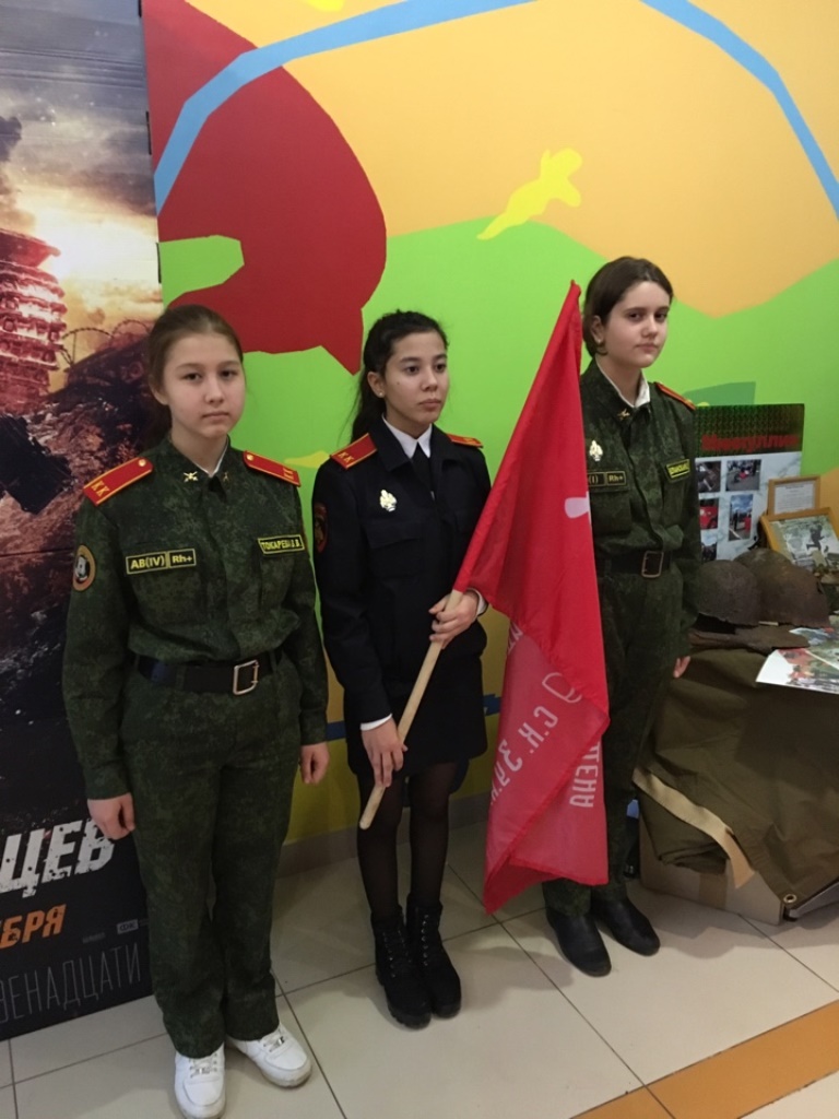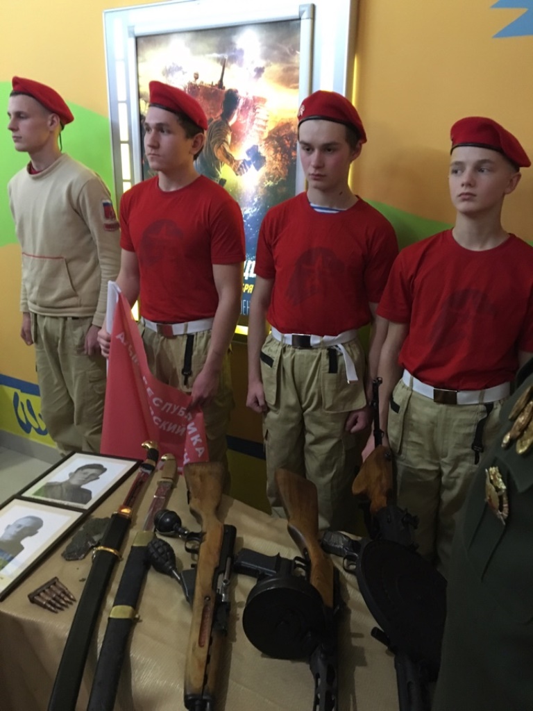 Затем состоялись показательные выступления отряда «Юнармия» и был продемонстрирован ролик «Юнармия: вчера, сегодня, завтра». Встреча закончилась совместным просмотром фильма « 28 панфиловцев».