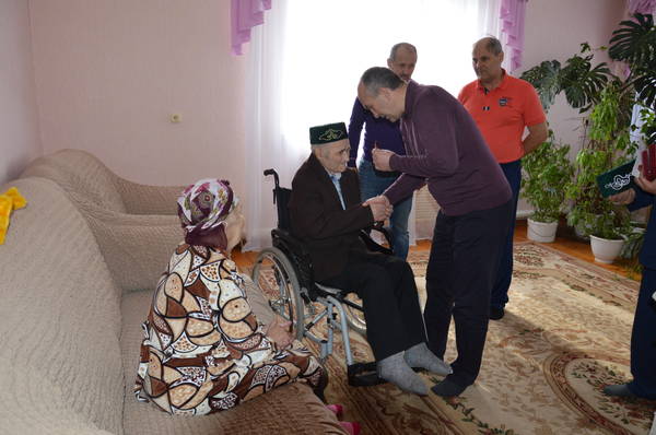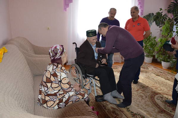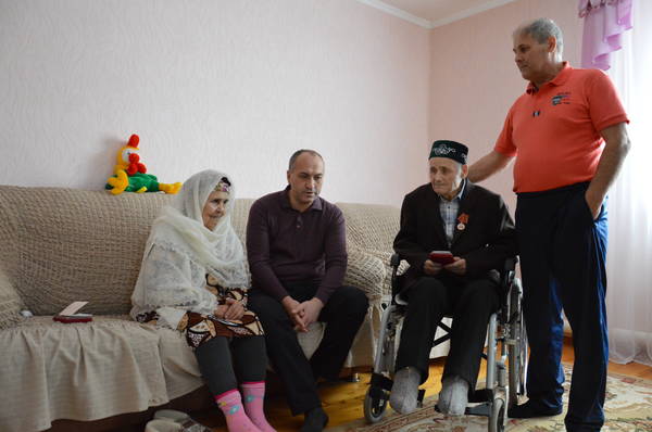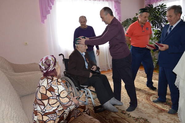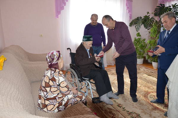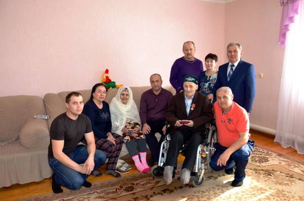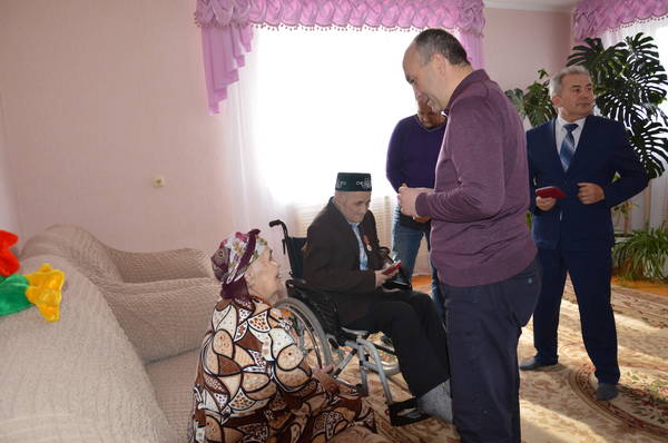 21.03.2015 Глава района М.З.Шайдуллин вручил юбилейные медали "70 лет Победы в ВОВ 1941-1945гг." ветеранам ВОВ Миннеханову Фоату Миннахметовичу и Миннехановой Сагире Шайхвалиевне