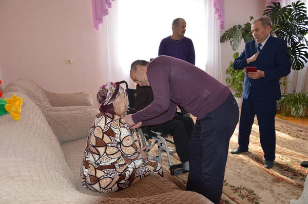 Глава района М.З.Шайдуллин вручил юбилейные медали "70 лет Победы в ВОВ 1941-1945гг." ветеранам ВОВ Миннеханову Фоату Миннахметовичу и Миннехановой Сагире Шайхвалиевне