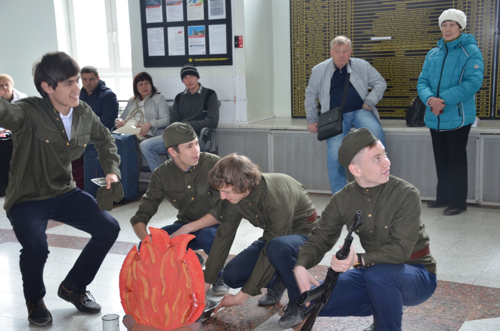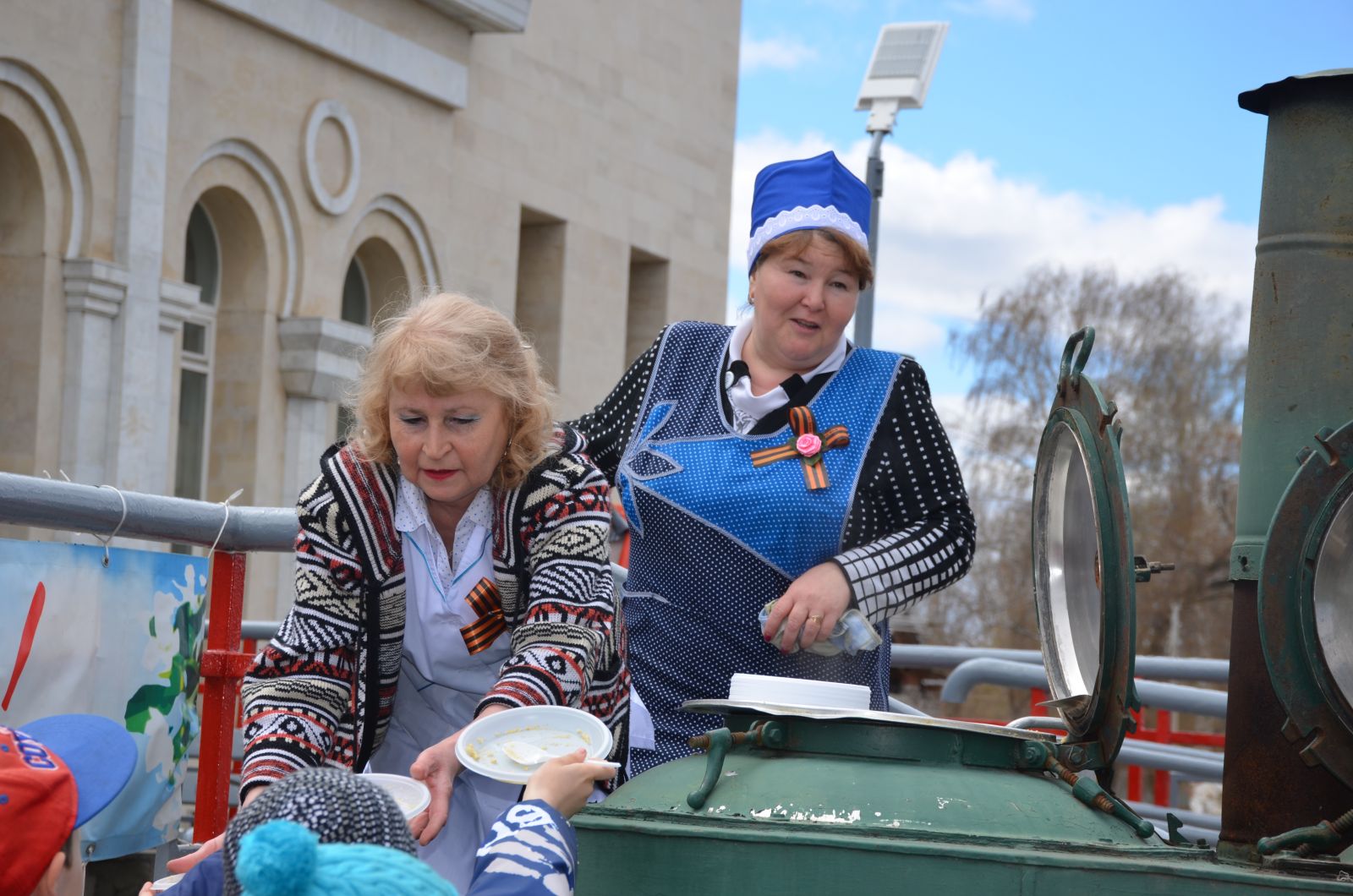 Участниками праздничных мероприятий в Агрызе стали не только жители и гости города, но и просто проезжие – пассажиры поездов. Так, 5 мая на перроне агрызского вокзала перед главным входом была организована солдатская каша, которой мог угоститься любой желающий.
