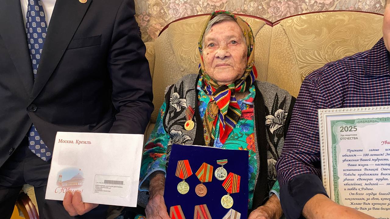 От имени Президента Российской Федерации Владимира Путина, Раиса Республики Татарстан Рустама Минниханова, глава Лаишевского района Ильдус Зарипов поздравил с вековым юбилеем труженицу тыла и ветерана труда Анастасию Дмитриевну Александрову. В рамках Года защитника Отечества, объявленного главой государства, он вручил долгожительнице медаль «80 лет Победы в Великой Отечественной войне 1941-1945 гг.», поздравительные телеграммы и памятные подарки.
