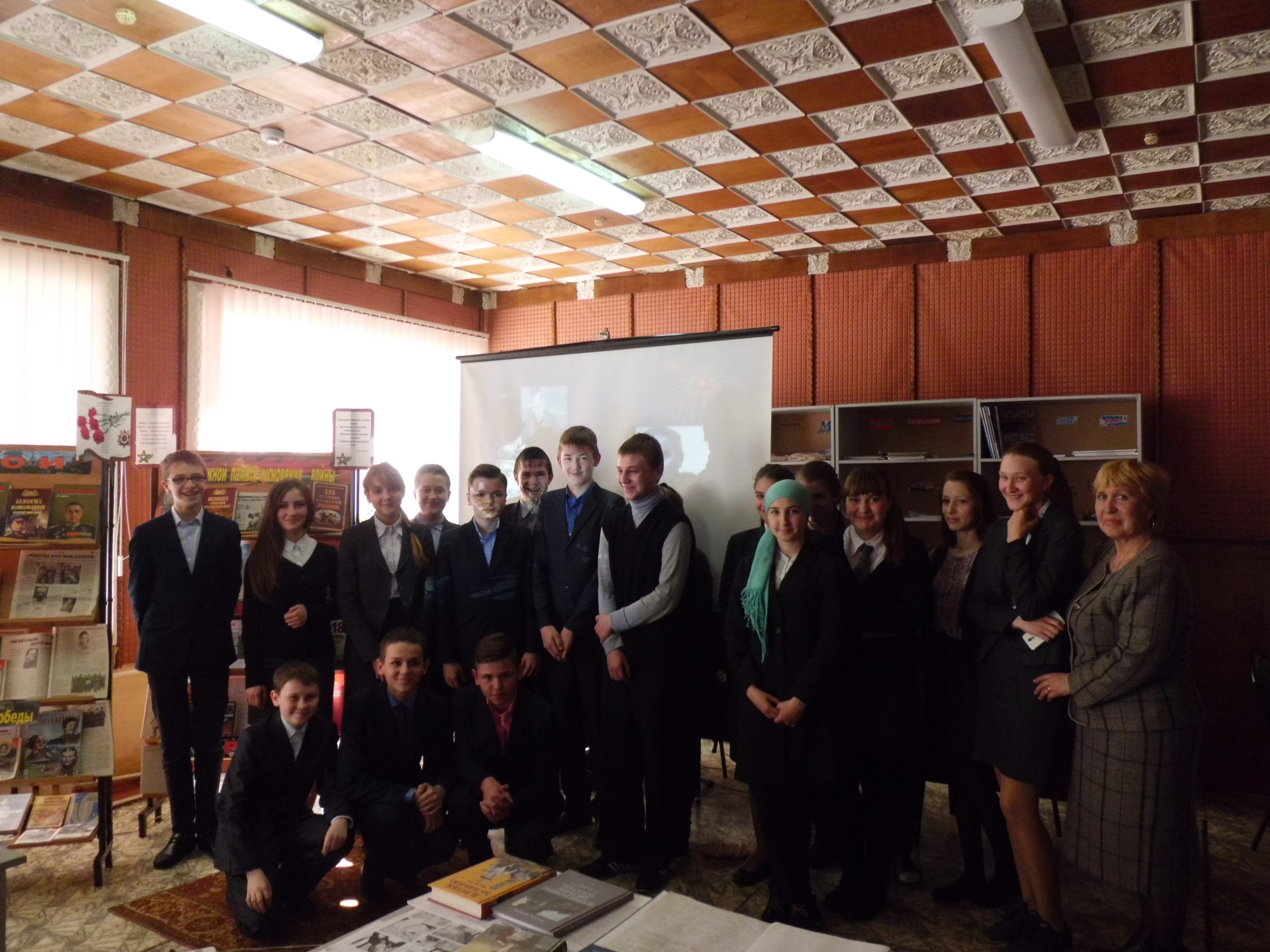 Величие ратного подвига нашего народа в Великой Отечественной войне не должно померкнуть для поколений нового века. В интеллектуальной эстафете памяти «Великая война. Великая Победа», которая состоялась в центральной библиотеке, приняли участие учащиеся 8 класса Болгарской средней школы №2 (классный руководитель Е.В.Елизарова).