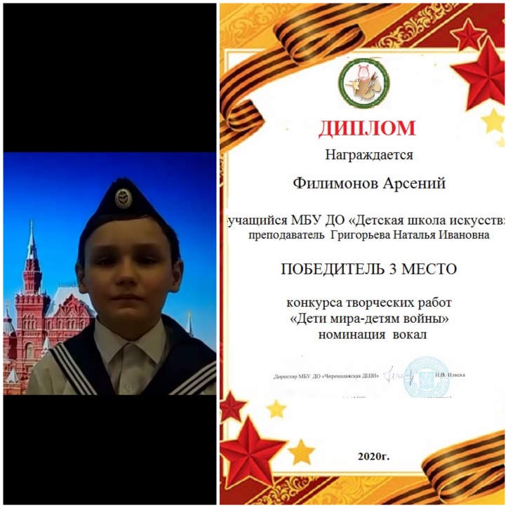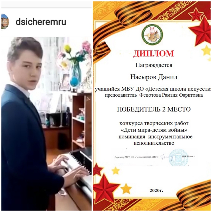 Поздравляем учащихся ДШИ -победителей музыкального конкурса "ДЕТИ МИРА- ДЕТЯМ ВОЙНЫ" , который прошел в рамках празднования 75 летия Победы в ВОВ.