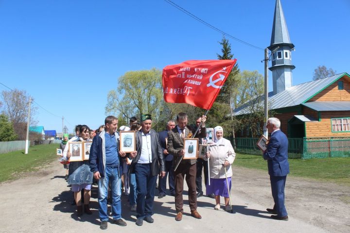 Директор школы Шамиль Абдрахманов, открывая торжественный митинг, поздравил жителей, ветеранов, гостей с праздником Великой Победы, пожелал мирного неба над головой, отметил какой ценой достался нам сегодняшний мир. Гости тоже поздравив всех с праздником Победы, пожелали всем здоровья. От имени ветеранов деревни выступил Амирзян Багаутдинов. Он отметил, что этот праздник каждый год встречает со слезами на глазах, эта война отняла его отца, его отец погиб на фронте.