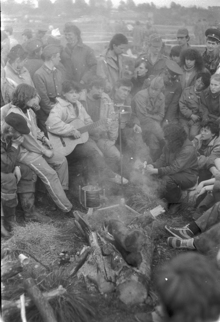В. Е.: Да, ну вот таким гимном поисковиков стала в свое время. «Нам опасаться артналета уже не нужно у костра, пришла гражданская пехота на помощь тем, кто пал вчера». Ну и так далее там... Вот мы были такой гражданской пехотой, ополчением. И не всегда и не всем были удобны. Но потом в ЦК комсомола, надо отдать им должное, поняли, что надо работать с теми, кто есть.