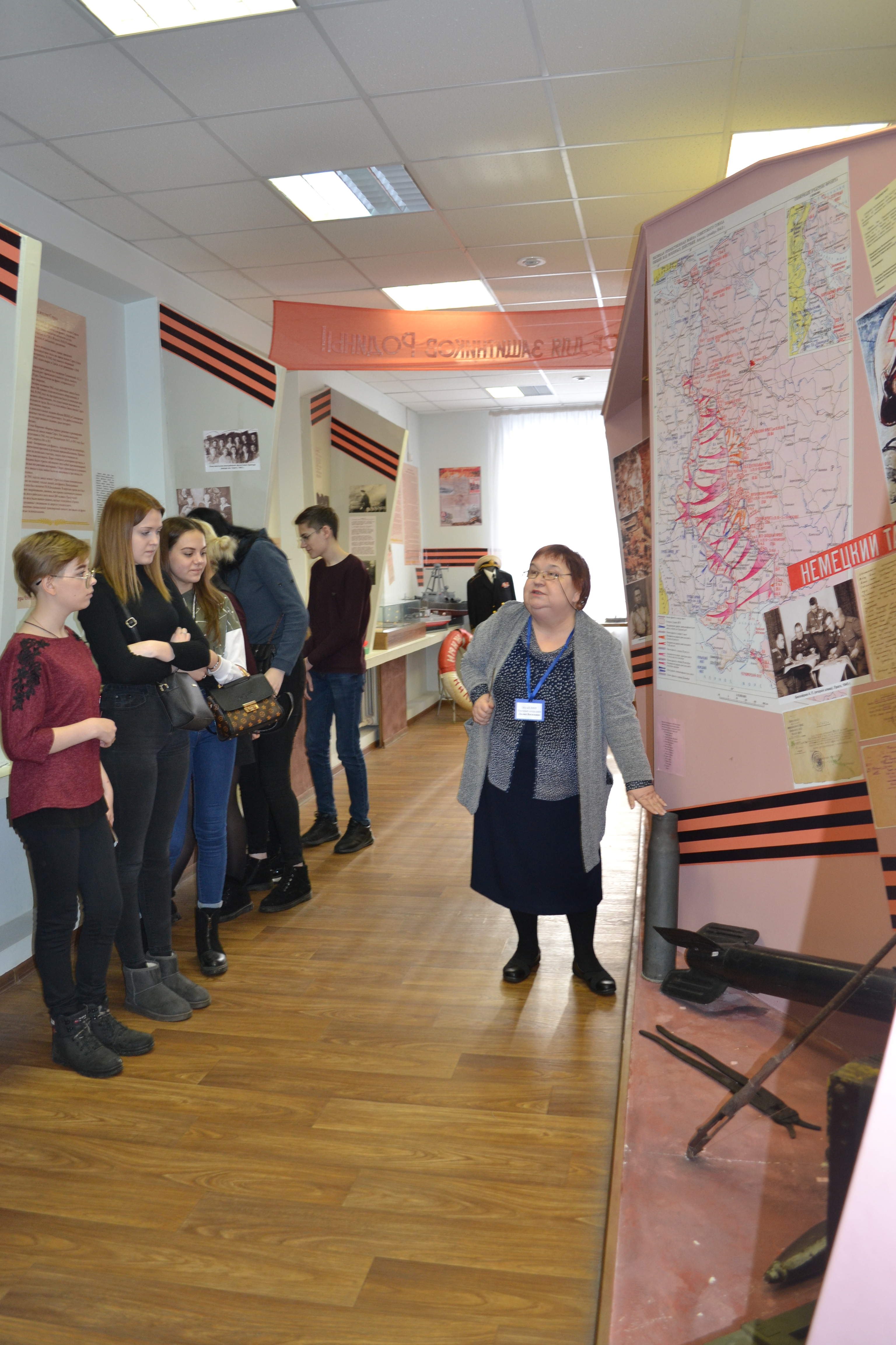7 февраля в Музее Историко-культурного наследия на экскурсии по военному залу «Зеленодольск в годы Великой Отечественной войны», приуроченной к знаменательной дате 75-летию победы в Великой Отечественной войне побывали учащиеся Механического техникума . Ребята узнали о жизни города Зеленодольска в годы войны, какая продукция выпущенная на заводах города предназначалась для фронта. Сколько единиц бронекатеров и охотников за подводными лодками было выпущено за военный период Зеленодольским судостроительным заводом. Поговорили о Героях Советского Союза, каким мужеством обладали те, кто отражал нападки врага на передовой и о тружениках тыла работавших не жалея себя без отдыха в условиях лишений. В завершении экскурсии молодые люди и девушки поблагодарили научного сотрудника музея за проникновенный рассказ о сложном военном периоде не только для небольшого города на Волге но и для всей страны. Сильной страны, которая несмотря ни на что смогла объединиться ради единой цели-победы над фашистскими захватчиками и одержала ее!