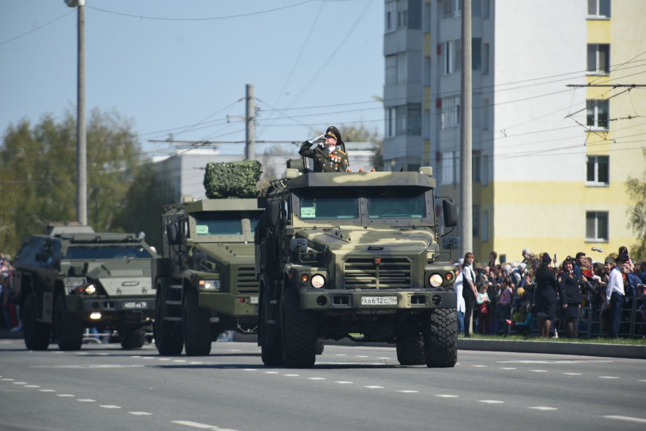Под звуки торжественного марша в парадном строю проехала военная техника. Возглавила парадную механизированную колонну специальное транспортное средство – бронированный корпусной автомобиль «Патруль» на базе узлов, агрегатов и систем полноприводного шасси КАМАЗ, разработанный компанией «АСТЕЙС».