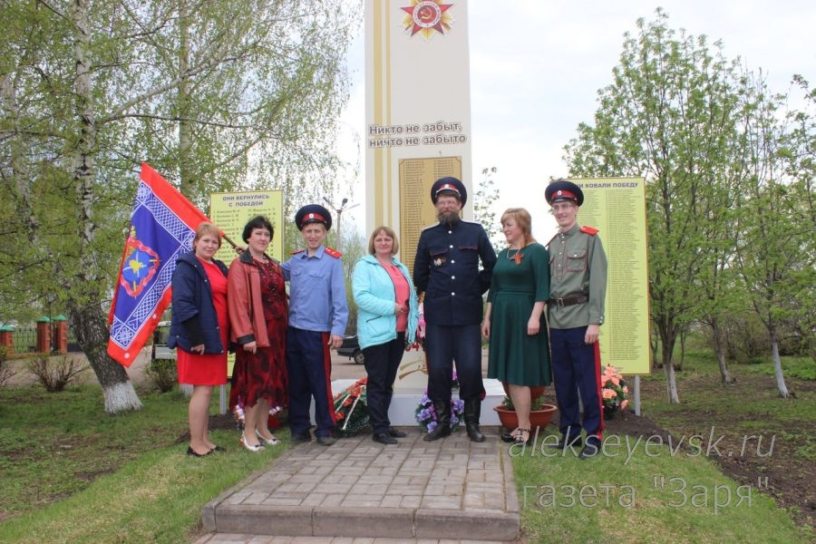 Духовник станицы, иерей Семен Махортов, принял на хранение знамя и поздравил казаков с Днем Победы. Перед передачей был проведен праздничный молебен в честь святого Георгия Победоносца.