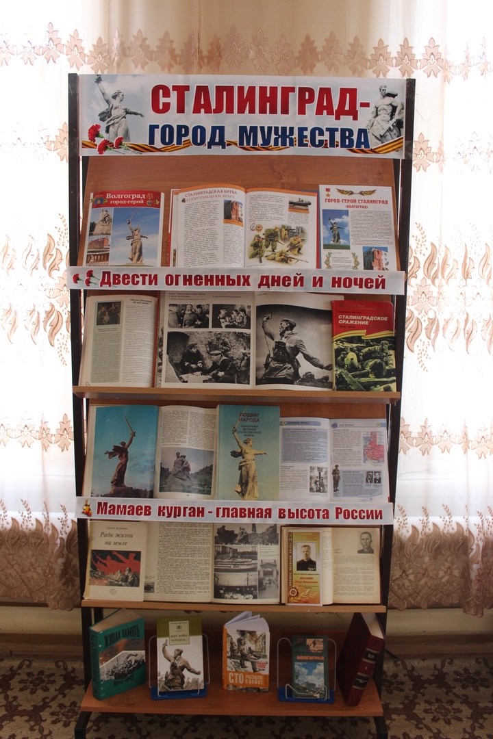 К этой знаменательной дате в Детской библиотеке оформлена книжная выставка «Сталинград – город мужества». Из предложенных изданий читатели узнают о событиях великой битвы на Волге, о массовом героизме воинов, сделавших возможной эту победу, и о том, какое значение в ходе Великой Отечественной имела Сталинградская битва.