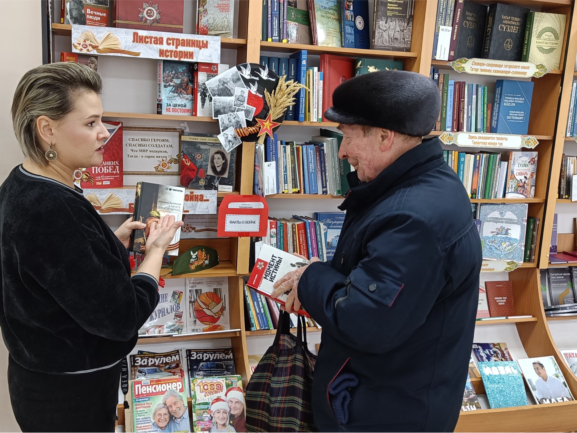 Много лет отделяет нас от Великой Отечественной войны. Но время не снижает интереса к этой теме, библиотекари обращают внимание сегодняшнего поколения на далёкие фронтовые годы, возвращая к истокам подвига и мужества советских солдат. На обозрение читателей сотрудниками библиотеки Дружбы народов (г. Бугульма) представлена выставка «Великий подвиг великого народа», на которой расположились художественные и документальные произведения, рассказывающие о Великой Отечественной войне и помогают подробнее узнать прошлое своей страны и её роль в мировой истории, о беззаветном героизме и подвигах, совершенных советскими людьми во имя Родины и ради защиты всего того, что было нам дорого и свято.
