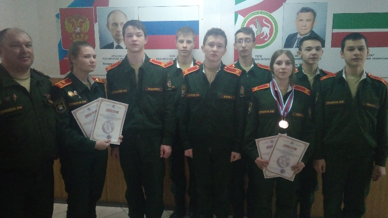 Команда Тетюшской кадетской школы-интерната (руководитель команды Гайнутдинов Р.Р.) приняла участие в республиканской спартакиаде по военно-прикладным видам спорта среди кадет на переходящий кубок республиканской общественной организации ветеранов войны «Союз ветеранов РТ», посвященной Дню защитника Отечества, которая состоялась в Казани с 20 по 22 февраля.