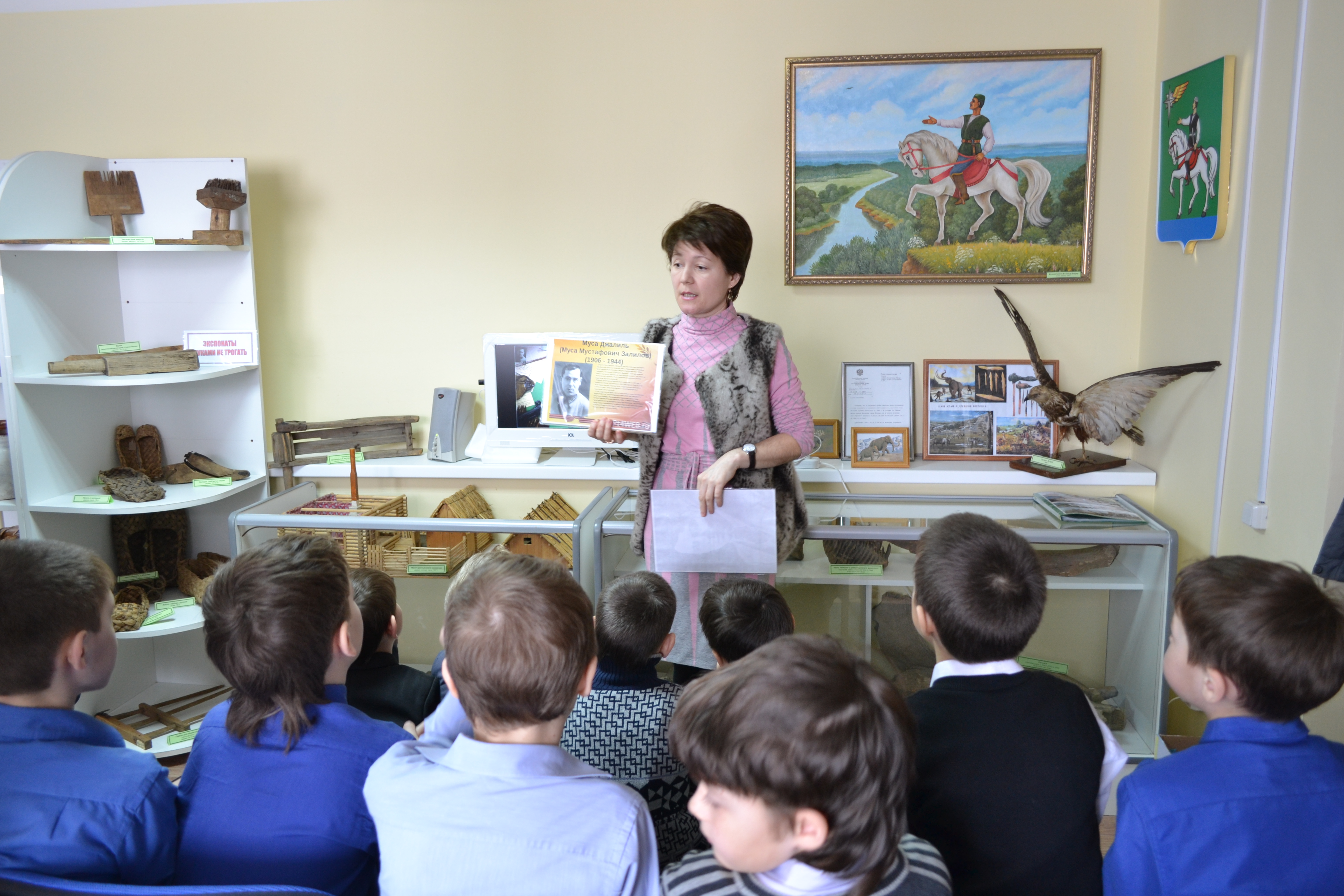 В музее прошла лекция, посвященная к 110-летию со дня рождения татарского поэта Мусы Джалиля. Были приглашены учащиеся 3-го класса гимназии № 1 города Агрыз. По ходу лекции ученики ознакомились с жизнью, творчеством и подвигом М. Джалиля, посмотрели фильм о нем, прочитали стихи поэта. А также детям было интересно узнать, что Муса Джалиль был три дня в Агрызе проездом перед отправкой на фронт. Это было в начале января 1942 года….