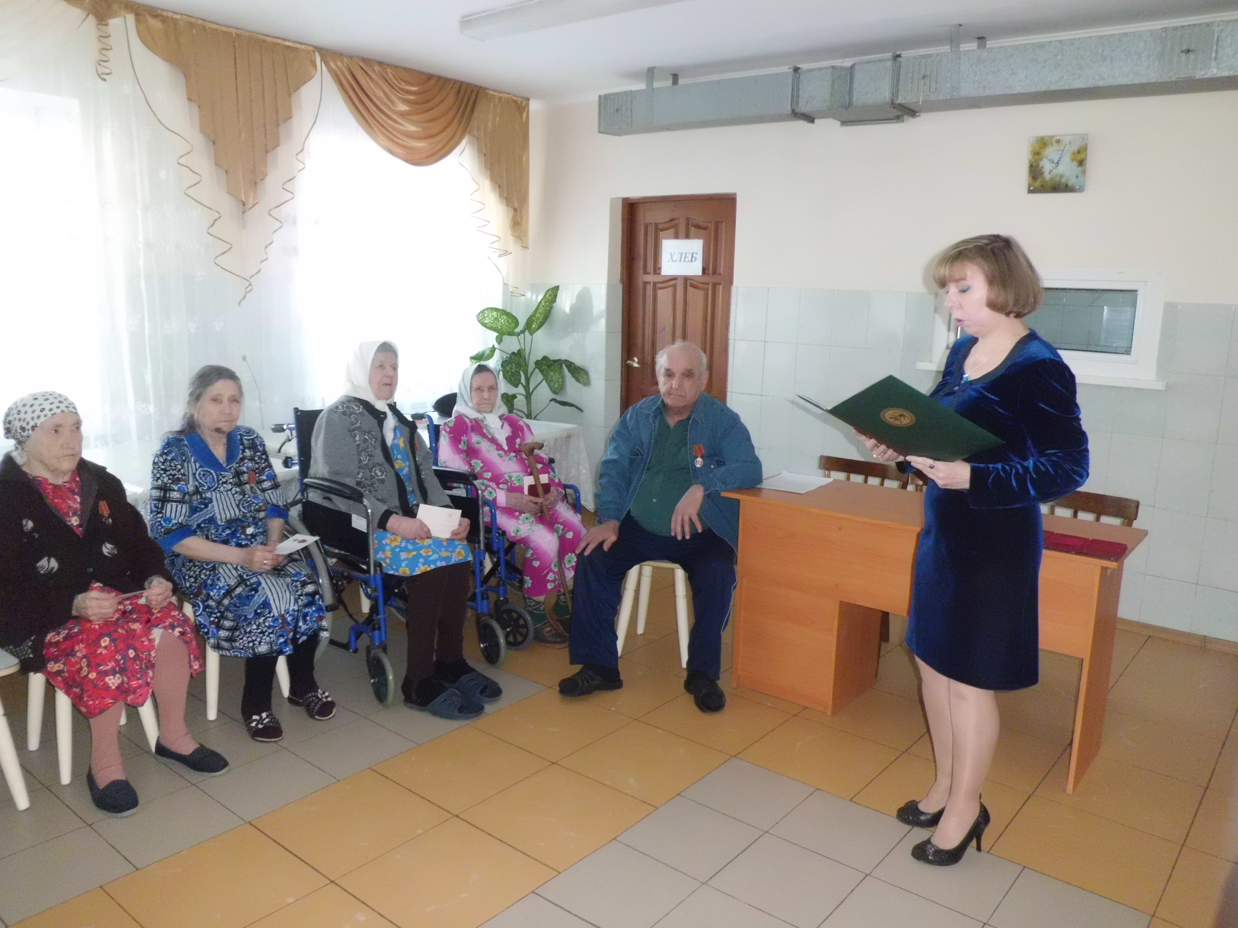 В Доме интернате для престарелых прошла литературная композиция «Такой сильный слабый пол», посвященная 70 – летию Великой Победы, женщинам - ветеранам Великой Отечественной войны, которые воевали на фронтах от нашего Спасского района. Победу приближали не только мужчины. Нежные, хрупкие девушки и женщины тоже взвалили на себя тяжесть испытаний. Ведущая, библиотекарь Байкузиева Г.Н., познакомила собравшихся с биографиями девушек, наших землячек, которые ушли на войну совсем юными: Низамутдиновой М.Г, Тихоновой Т.А, Валеевой О.В, Грачевой О.И, Бузукиной А.П. У каждой из них была своя фронтовая судьба. Также ведущая рассказала о подвигах других российских женщин, участниц войны, предложила собравшимся викторину о женщинах войны, в частности, были предложены вопросы: кто такие «ночные ведьмы», почему фашисты так их назвали; как ласково назвали установку реактивной артиллерии; как называется стихотворение, посвященное любви и верности на войне и др. Уходит поколение солдат той страшной войны, но не должна уйти память о них.