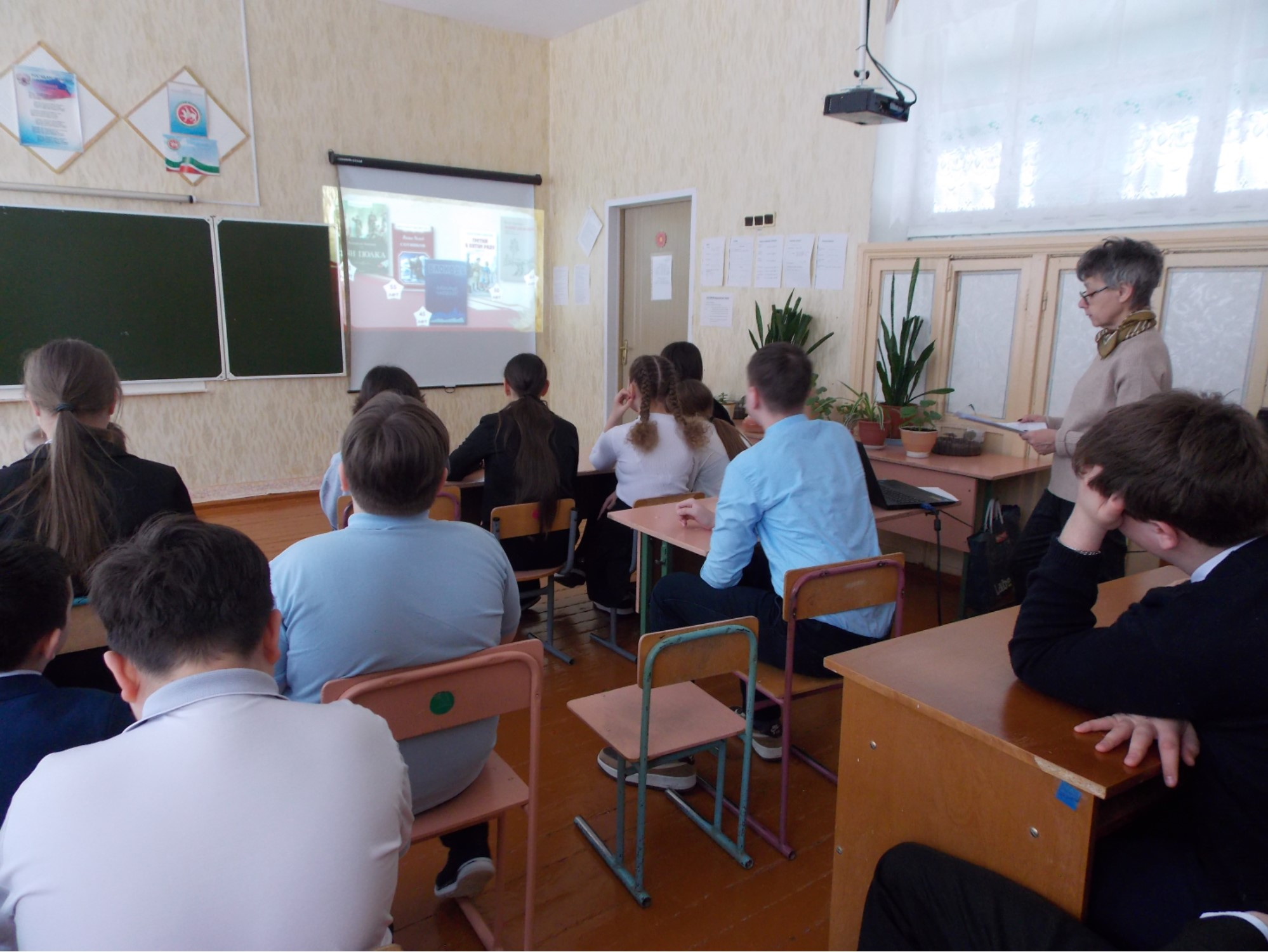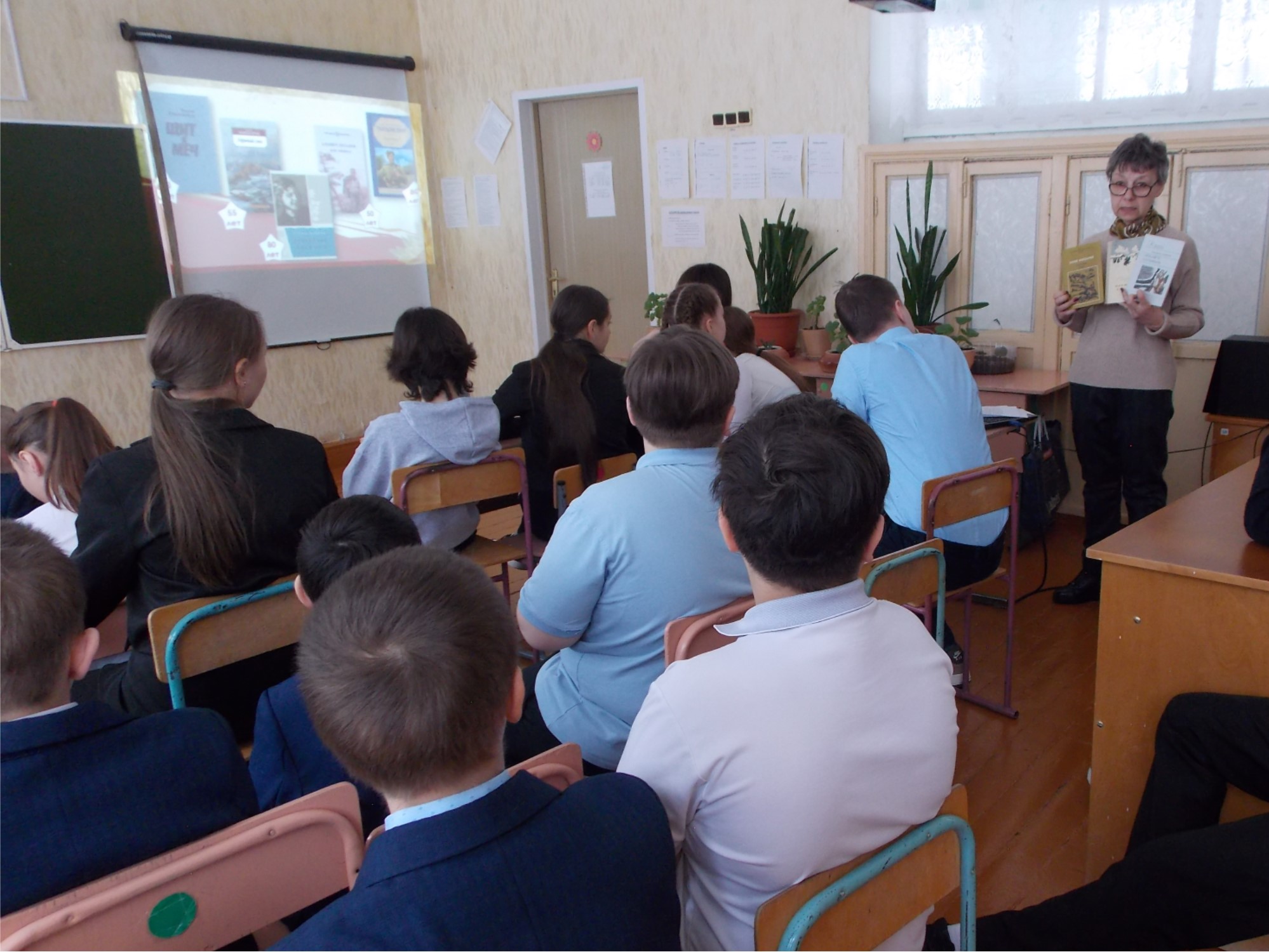 В рамках празднования Года защитника Отечества библиотекарь Зеленорощинской сельской библиотеки-филиала №23 предложила читателям литературно-музыкальный ретро-взгляд «Искусство в годы страшных испытаний» (по событиям 1941-1945 годов), где шел рассказ о художниках, поэтах и писателях-фронтовиках, написавших не только произведения-реквием, но и заветы ныне живущим. Пользователи ознакомились с репродукциями художников, а также со списком повестей, рассказов и поэм юбиляров года («Сотников» В. Быкова, «Блокада» А. Б. Чаковского, «Третий в пятом ряду» А. Г. Алексина, «Сын полка» В. П. Катаева и др.) – произведениями, которые навеки оставили миру память о великом мужестве Советского народа.