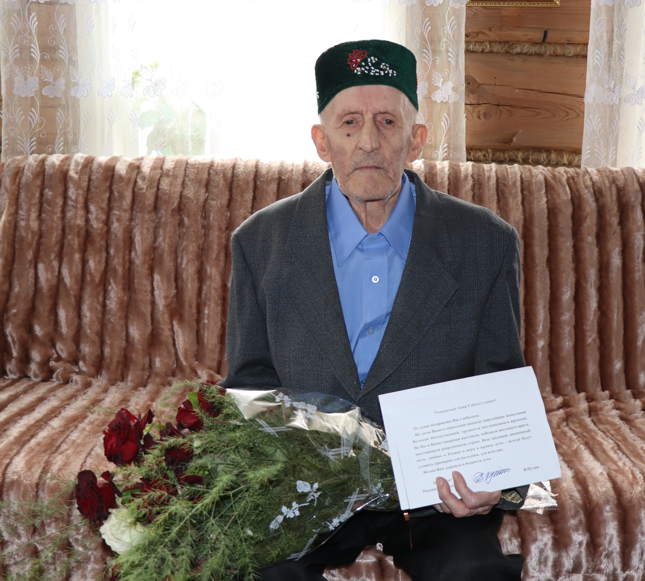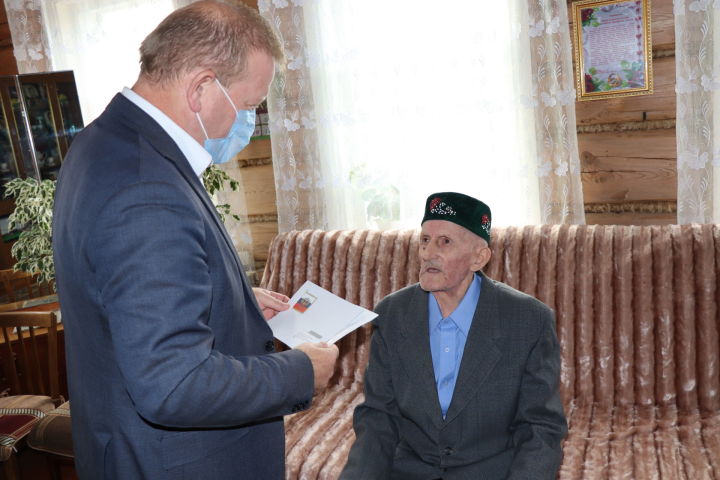 Со столь знаменательной датой юбиляра поздравил Глава района Марат Гафаров. Глава района вручил долгожителю: 90 летнему Амир Сибгатулловичу Алимову из села Большая Цильна поздравления от имени Президента РФ, а также подарки и цветы.