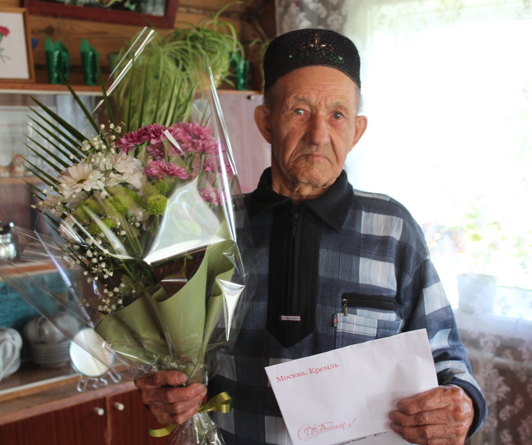 Глава района Марат Гафаров вручил юбиляру поздравительное письмо Президента России, букет цветов и подарок. Поздравил с юбилеем, пожелал здоровья, долгих лет жизни.