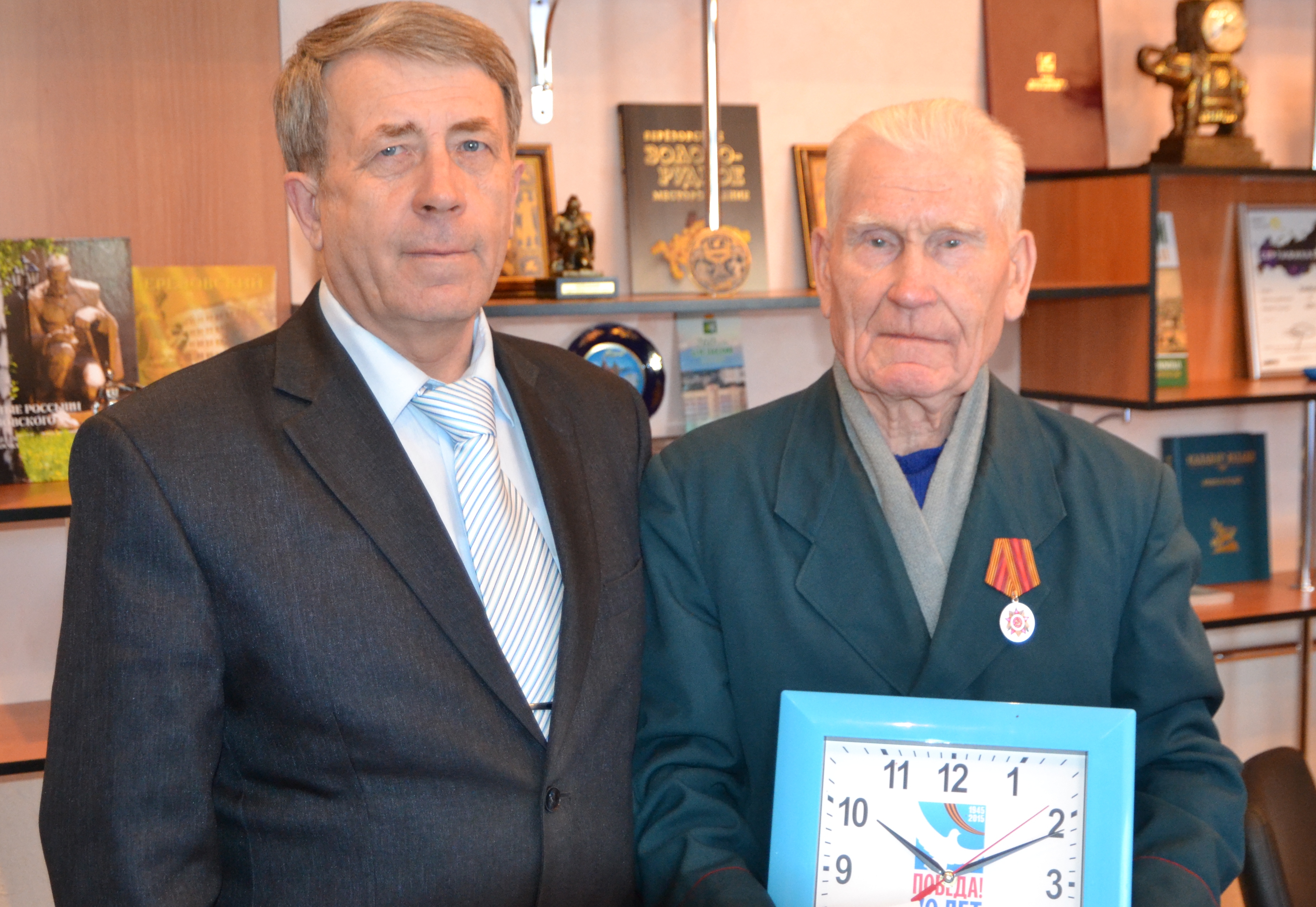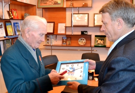 Сегодня руководитель Аппарата Совета Елабужского муниципального района Александр Романов вручил юбилейную медаль «70 лет Победы в Великой Отечественной войне 1941-1945 гг.» труженику тыла Мусе Исмагиловичу Исмагилову. Также ему подарили от имени главы района Геннадия Емельянова настенные часы с юбилейной символикой.
