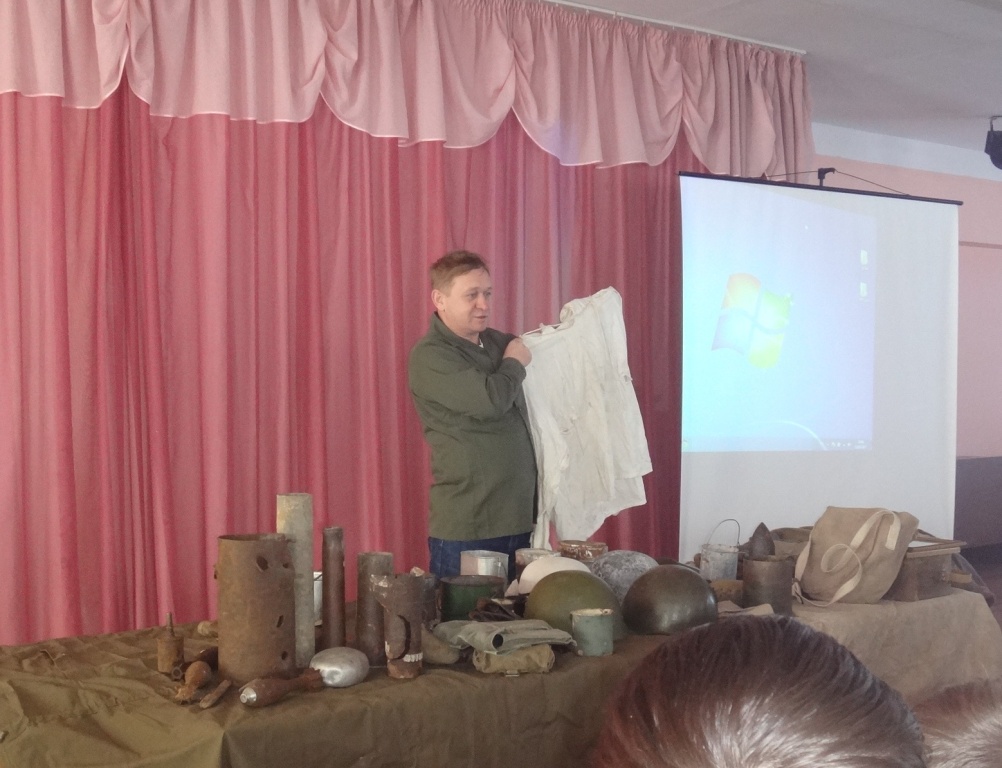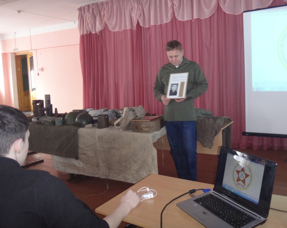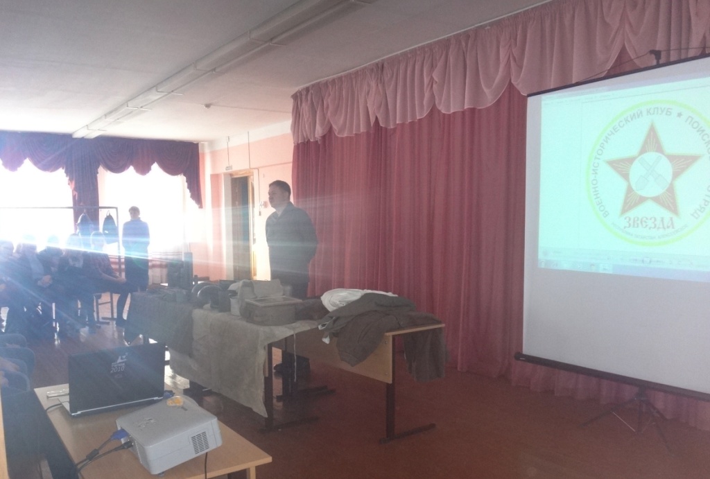 11 февраля 2017 года в рамках проводимого в Алексеевском районе традиционного "Марша Памяти" в школе №3 райцентра состоялась лекция-показ на тему "Поисковое движение" с использованием передвижной выставки военно-исторического клуба "Звезда". Слушателями и зрителями стали учащиеся 7-11 классов школы №3. Кроме устного рассказа об истоках, целях и задачах поисковой работы, подростки смогли узнать о результатах работы поискового отряда "Звезда" за 12 лет, увидеть и потрогать подлинные предметы с мест боёв, узнали о наиболее распространённых в годы войны образцах стрелкового оружия, о некоторых особенностях ношения красноармейской формы, а также увидели подборку фотографий из экспедиций 2015-2016 гг., иллюстрирующей специфику поисковых работ на местах боёв в Волгоградской области.