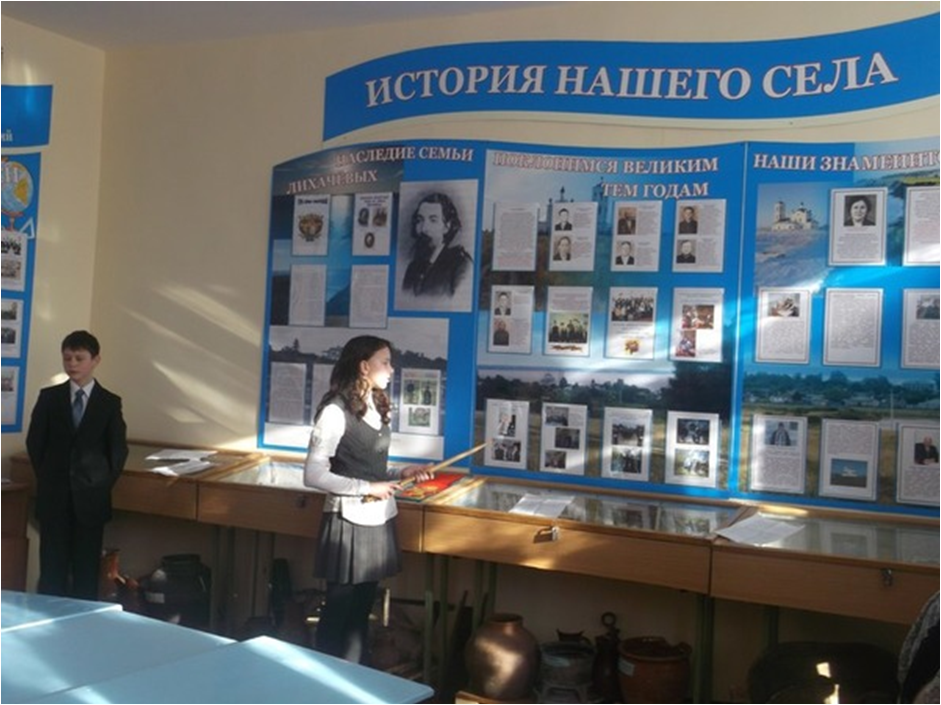 В нашей школе создан музейный уголок по истории села и школы, где постоянно проводятся экскурсии для приезжих гостей и школьников.