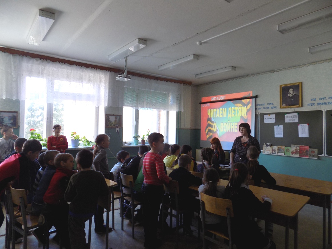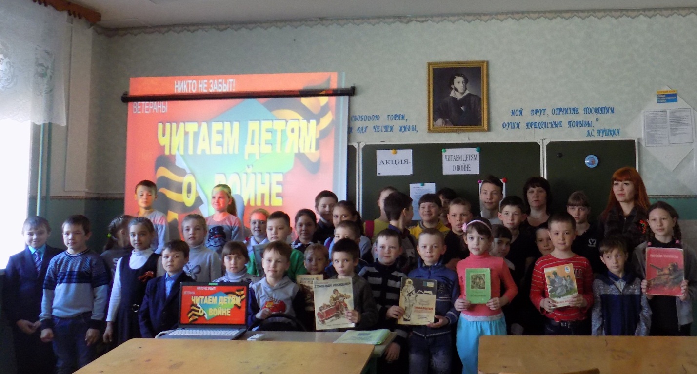 Утяшкинская сельская библиотека совместно с УООШ приняли участие в IX Международной Акции «Читаем детям о войне». В начале мероприятия методист сельской библиотеки рассказала детям о тяжелых годах Великой Отечественной войны, унесшую тысячи жизний, о героических подвигах советских солдат. Для учащихся 1-7 классов библиотекарь сельской и школьной библиотеки читали отрывки из произведений В. Морозова, С. Алексеева, Е. Воробьева, А. Митяева, трогательные стихи Мусы Джалиля «О героизме», «Красная ромашка». Акция сопровождалась презентацией книг о Великой Отечественной войне 1941-1945 гг., и книжной выставкой.
