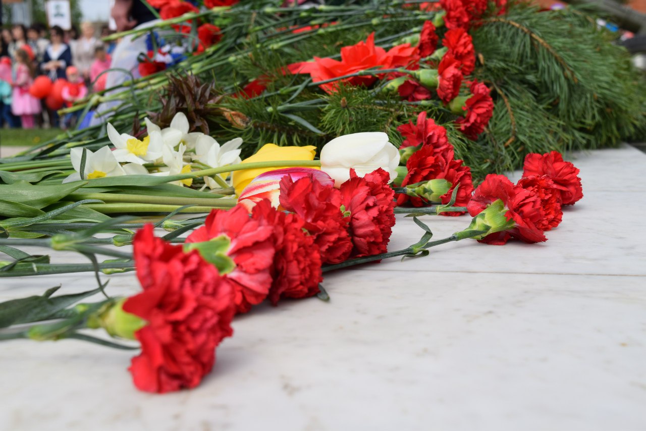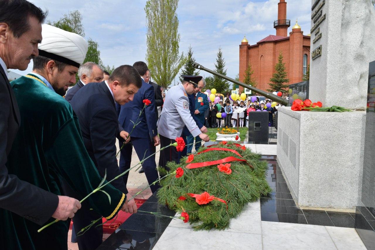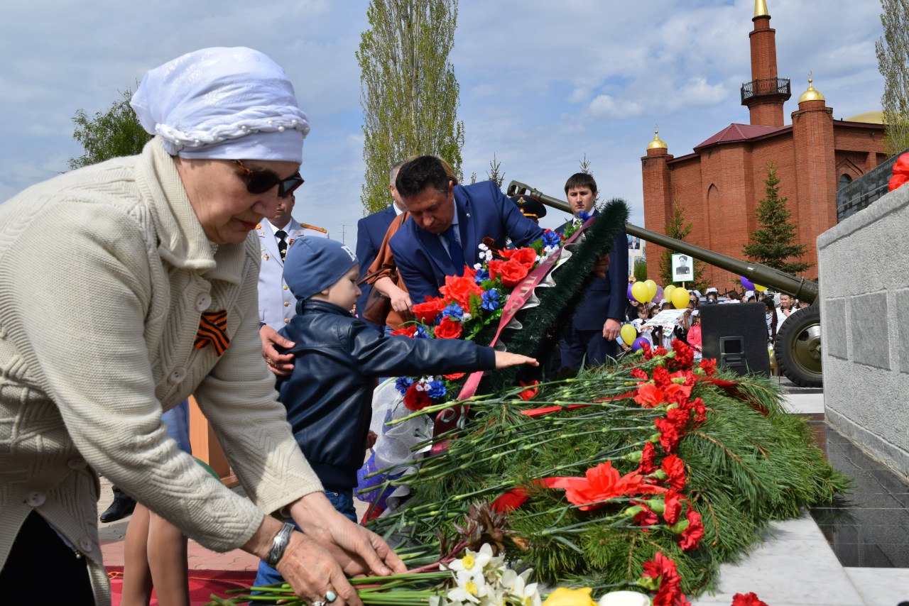 Митинг, посвященный Дню Победы в Великой Отечественной войне у мемориала в нижней части города Бавлы