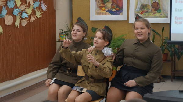 В программе прозвучали песни военных лет в исполнении Шайхутдиновой Анны, Голенковой Валерии, Благовой Анастасии, Хустнутдиновой Ксении, а также современные песни, посвященные Великой Победе в исполнении Хасяновой Эмилии, Дмитриевой Татьяны, Зариповой Аделины, Сироткиной Антонины, Пашиной Дарьи. Ведущими концерта были Лисюк В.О. и воспитанницы младшей группы ансамбля Хасянова Э. и Хуснутдинова К. Очень интересно и показательно было продемонстрировано интервью-видео с Ветераном ВОВ Ивановой Екатериной Павловной. Видео - хроника военных лет обогатила знания детей и создала эффект «машины времени». «Не спешите уйти ветераны Войны, оставайтесь до новой весны», - слова финальной песни в исполнении вокального ансамбля.