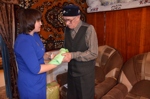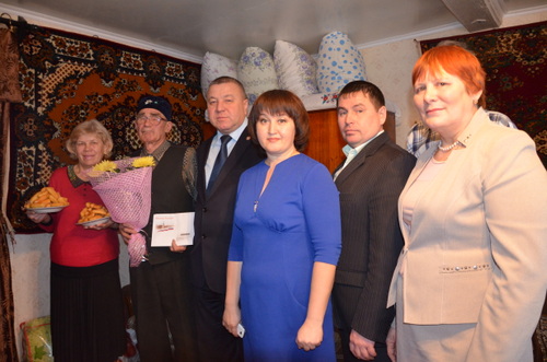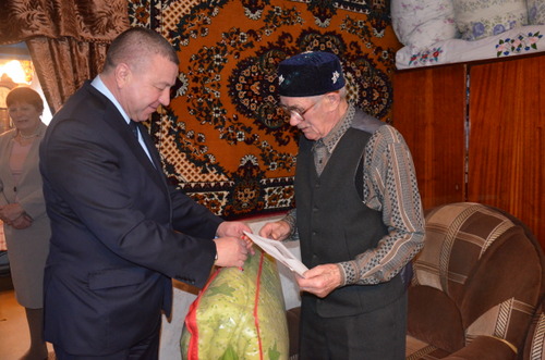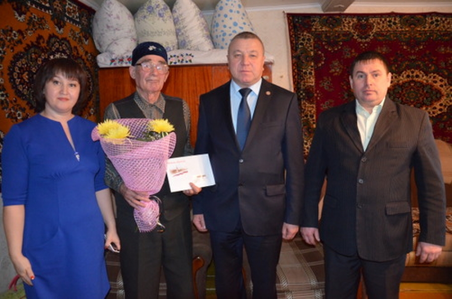 Поздравить юбиляра пришли Глава муниципального района Фарит Хуснуллин, глава Кавзияковского сельского поселения Рифгать Хуснутдинов, начальник отдела социальной защиты населения Гульнара Хузина, председатель совета ветеранов Фаузима Шакирова. Фарит Мунавирович вручил ветерану Поздравительное письмо Президента РФ Владимира Путина и памятный подарок.
