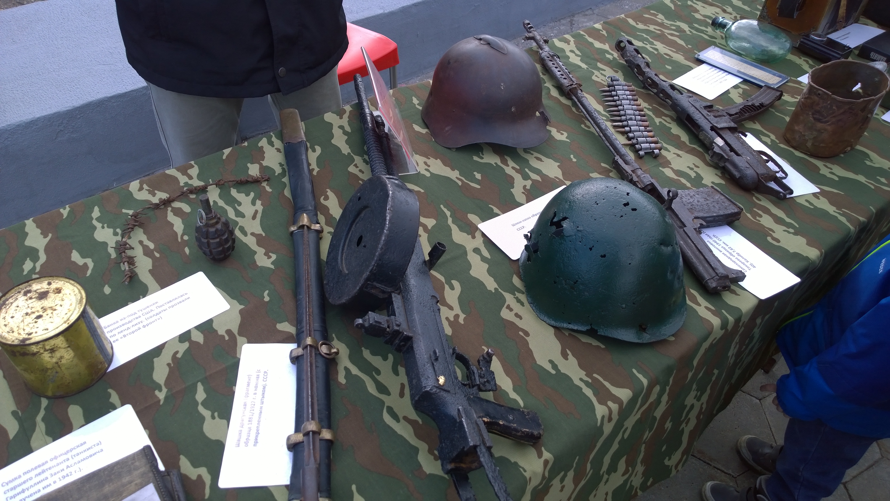 Сегодня в предверии Дня Победы в на мемориале "Родина-Мать" сотрудниками музея "На пути к Победе" при Городском дворце творчества детей и молодежи №1 была организована выставка "Эхо войны" из коллекции поискового отряда "КамАЗ". Выставка была приурочена к реппетиции городского Парада Победы.